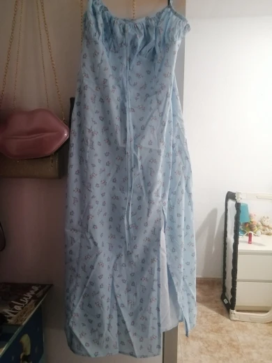 Платье очень удобно носить, но маленький размер, мне нужно немного надеть его, и все же какое удовольствие носить его. Ткань не хлопок, а синтетическая, поэтому у меня есть небольшие сомнения по поводу прочности платья. Я не рекомендую это для сильных грудей. Тем не менее, это все еще превосходное летнее платье.