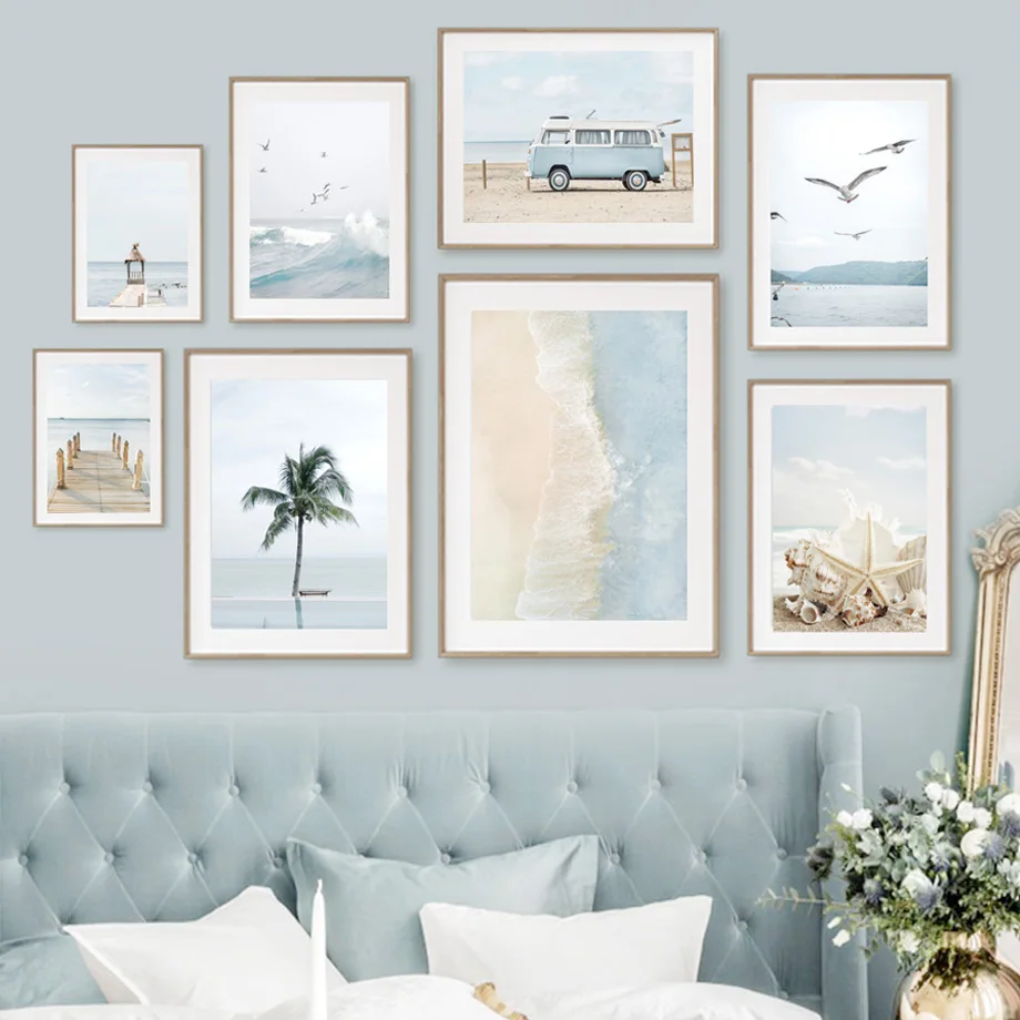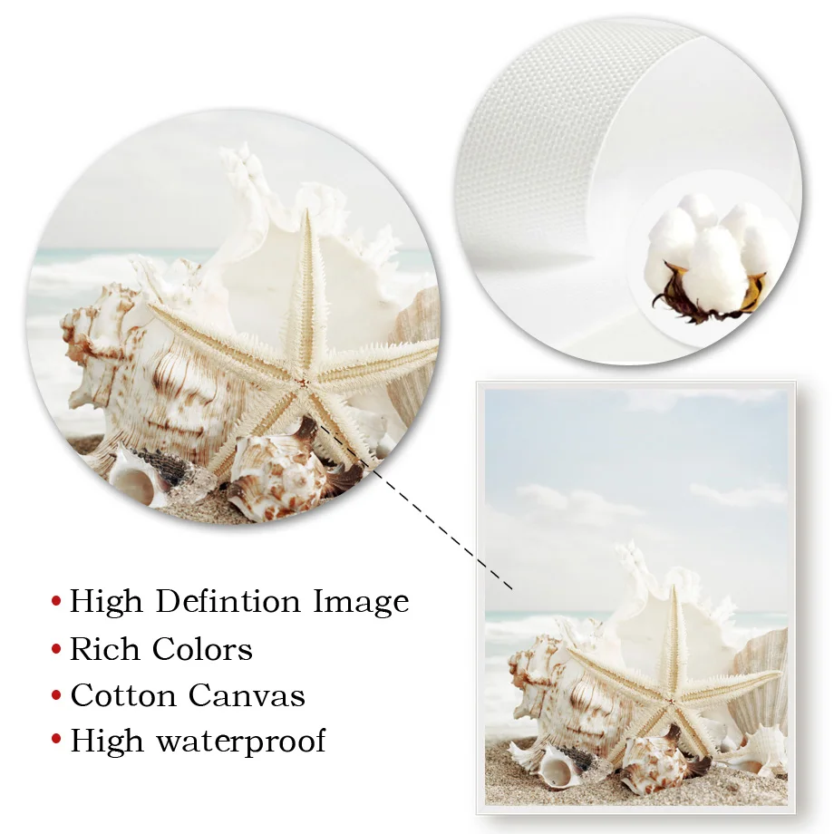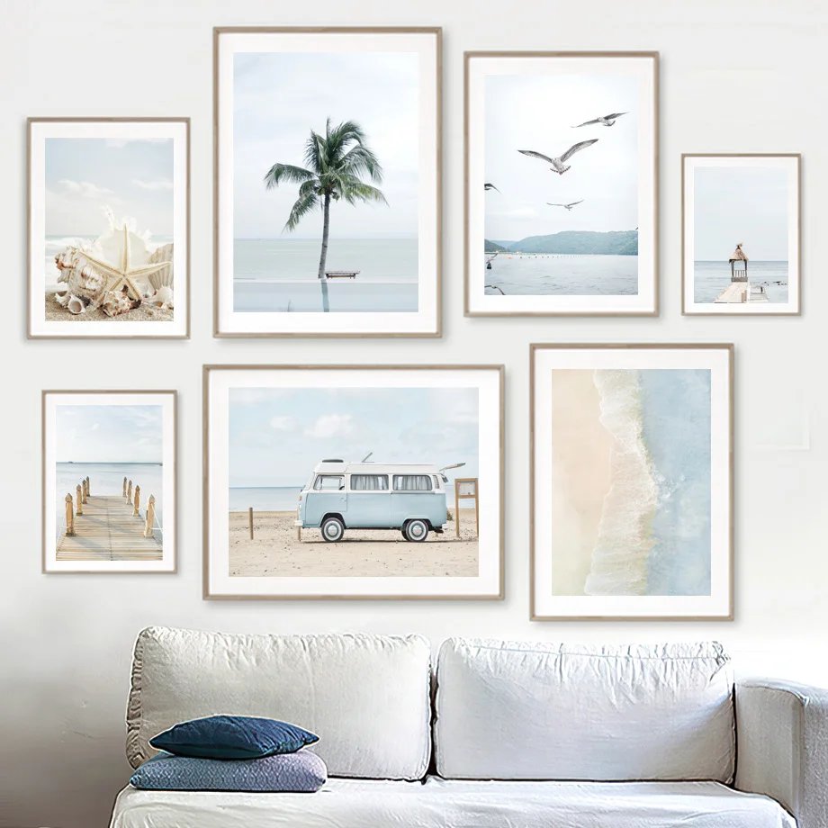 Чайка, кокосовое дерево, ракушка, морская звезда, Пляжная настенная Картина на холсте, скандинавские постеры и принты, настенные картины для декора гостиной