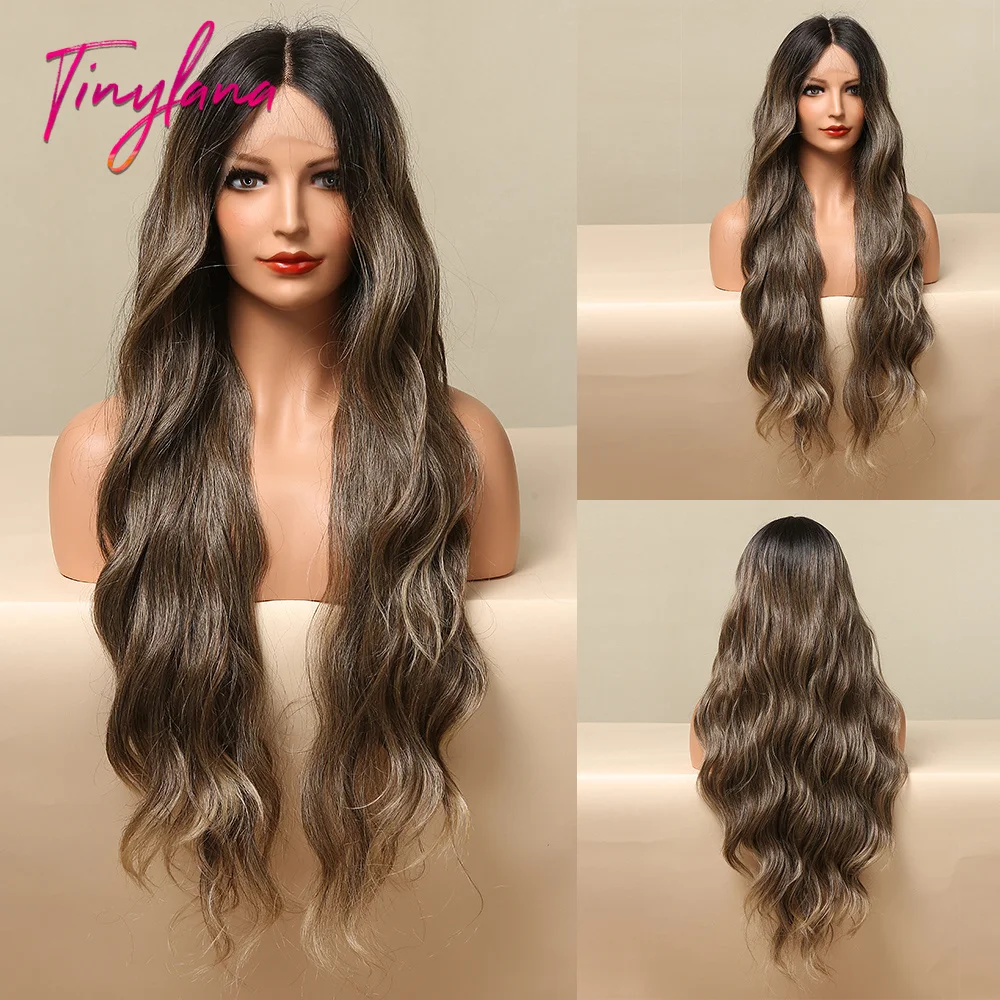 Крошечный Лана Омбре коричневый светильник лый блонд супер длинный Тело Волна синтетический парик фронта шнурка для женщин Косплей вечерние ежедневно жаростойкий