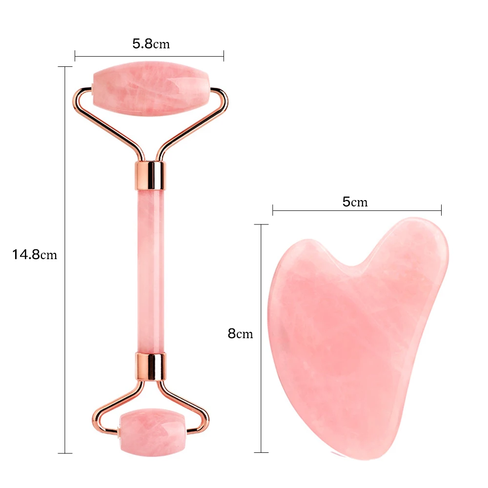 Розовый кварц нефритовый ролик для лица Массажер для похудения лифтинг лица Натуральный Нефритовый камень ролик для массажа лица Уход за кожей косметический набор