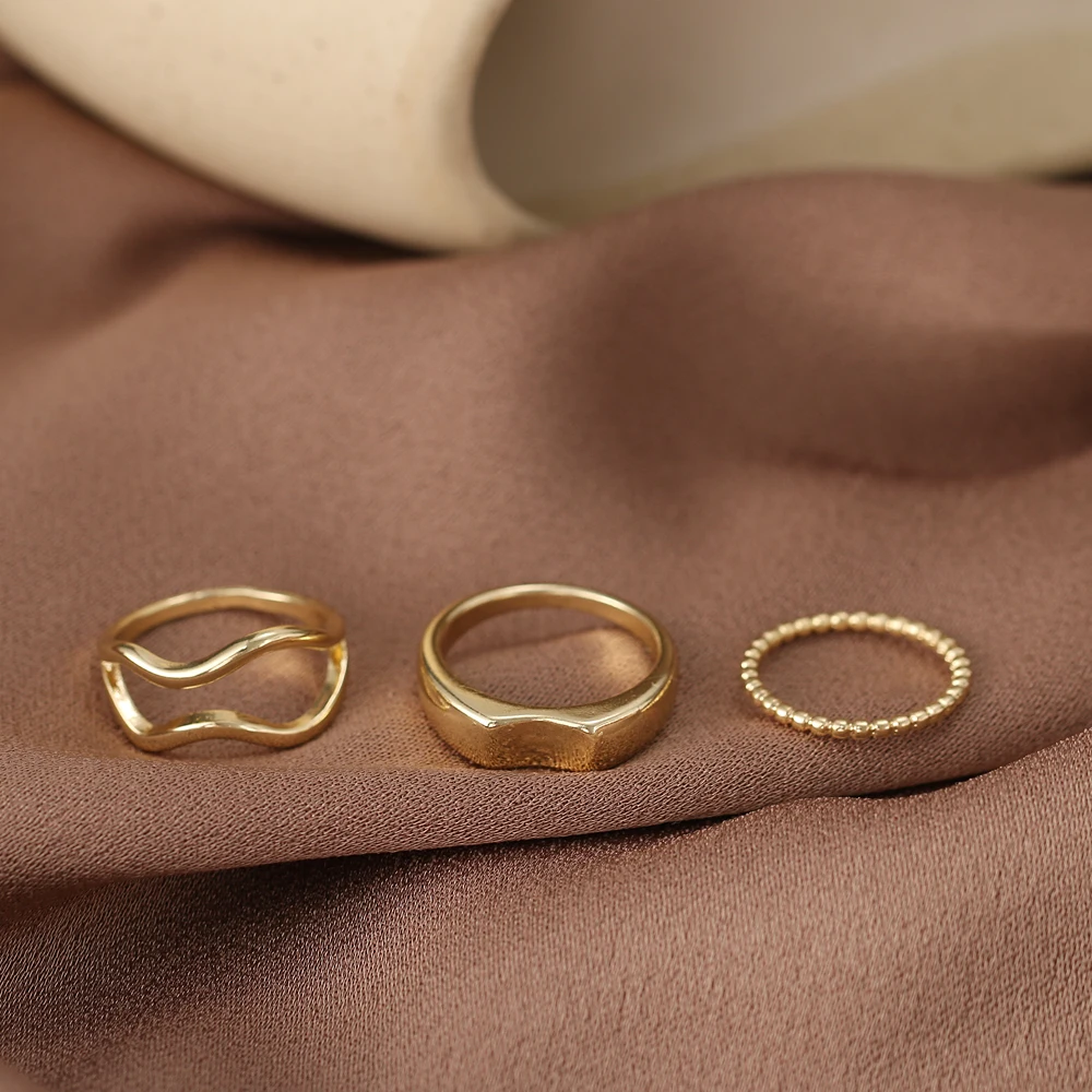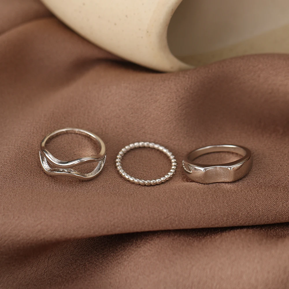 Кольцо регулируемое в стиле Ins с холодным ветром, комплект из 3 пр...