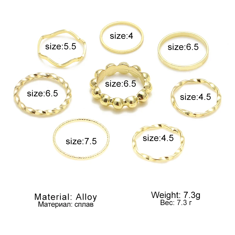 Набор винтажных асимметричных колец для женщин 4 шт., Позолоченные ...
