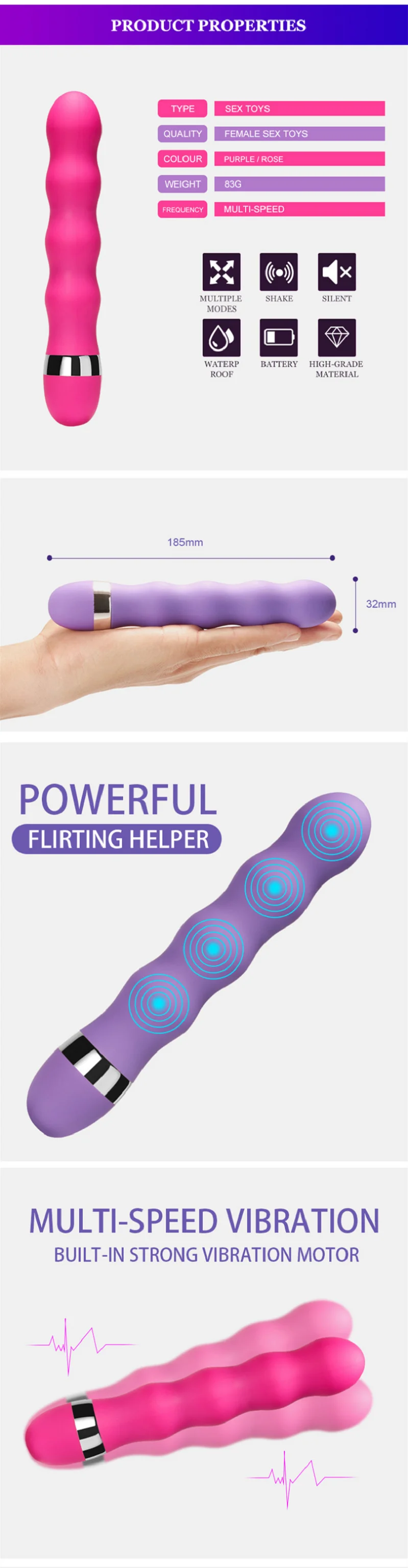 Multispeed vibration,Powerful,Waterproof
