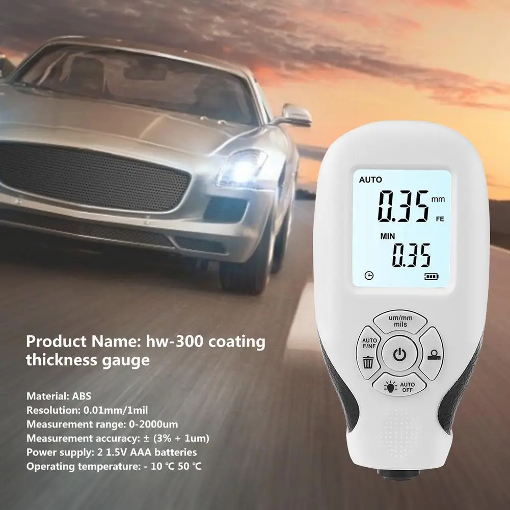 Толщиномер HW 300, 0-мкм, цифровой измеритель толщины автомобильной краски и сухой пленки для измерения толщины гальванического покрытия