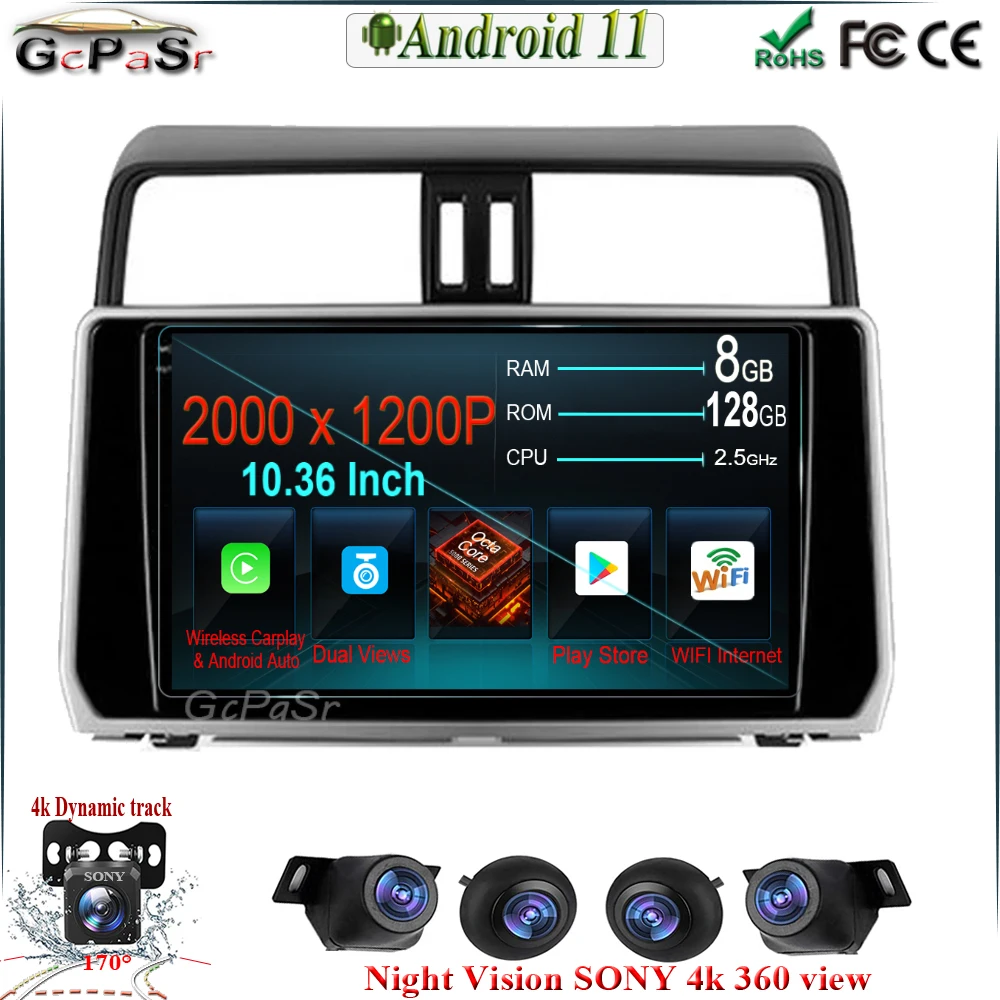 Автомобильный радиоплеер Android 11 для Toyota Land Cruiser Prado 1...