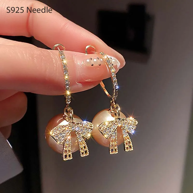 925 стерлингового серебра иглы серьги-кольца для женщин женские золотые украшения KD жемчугом элегантные женские серьги