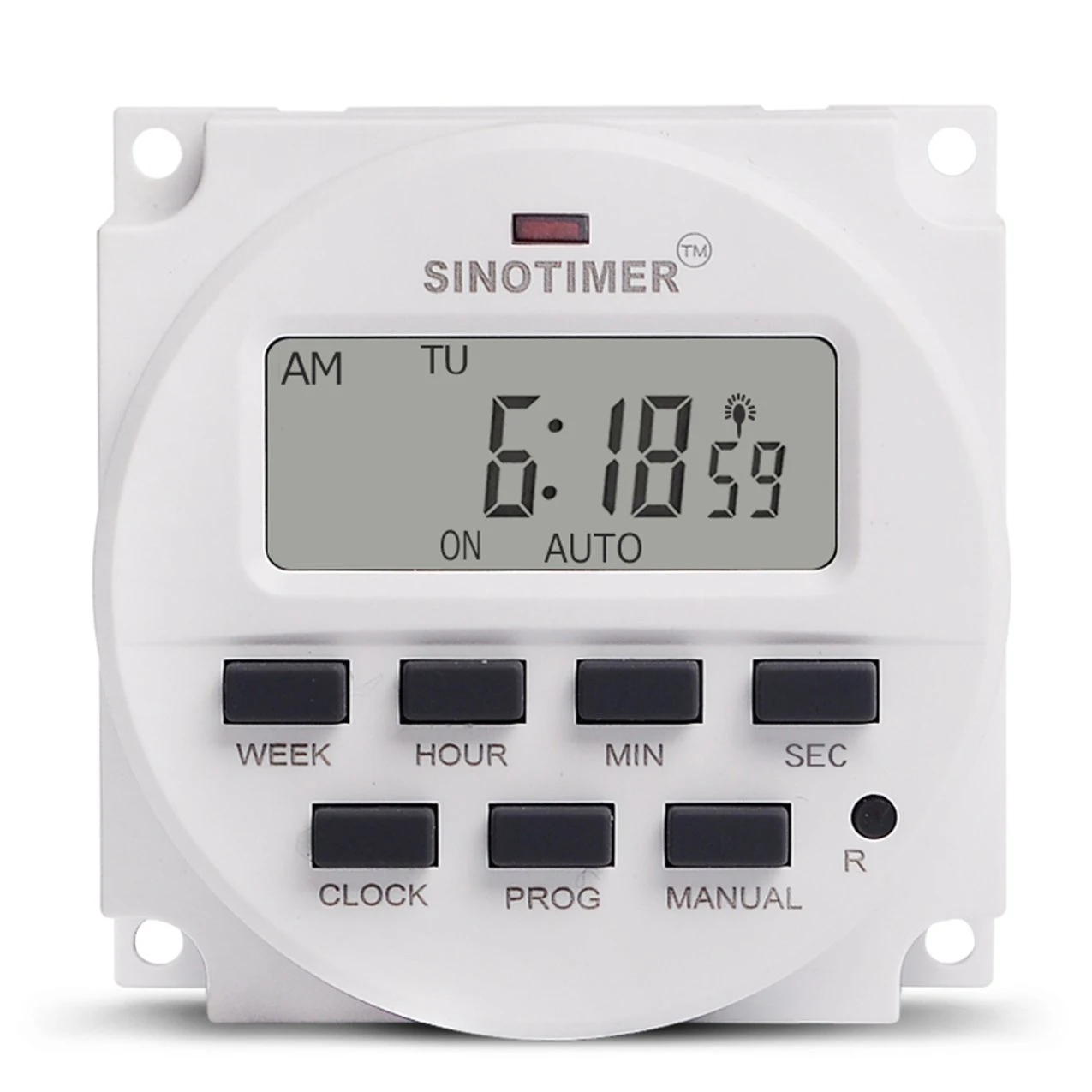 Простой, надежный цифровой таймер недели, который способен решить многие проблемы, связанные с автоматическим включением различных устройств в дом или на дачу. Достаточно Установить на место крепления, мощность 220 вольт и настроить. Затем таймер будет выполнять назначенную ему функцию для включения и отключения указанной программы. В самом таймере устанавливается аккумулятор, из-за которого текущее время устанавливается и поддерживается в таймере, а чехол с отключением питания 220 В настройки не сбрасываются.