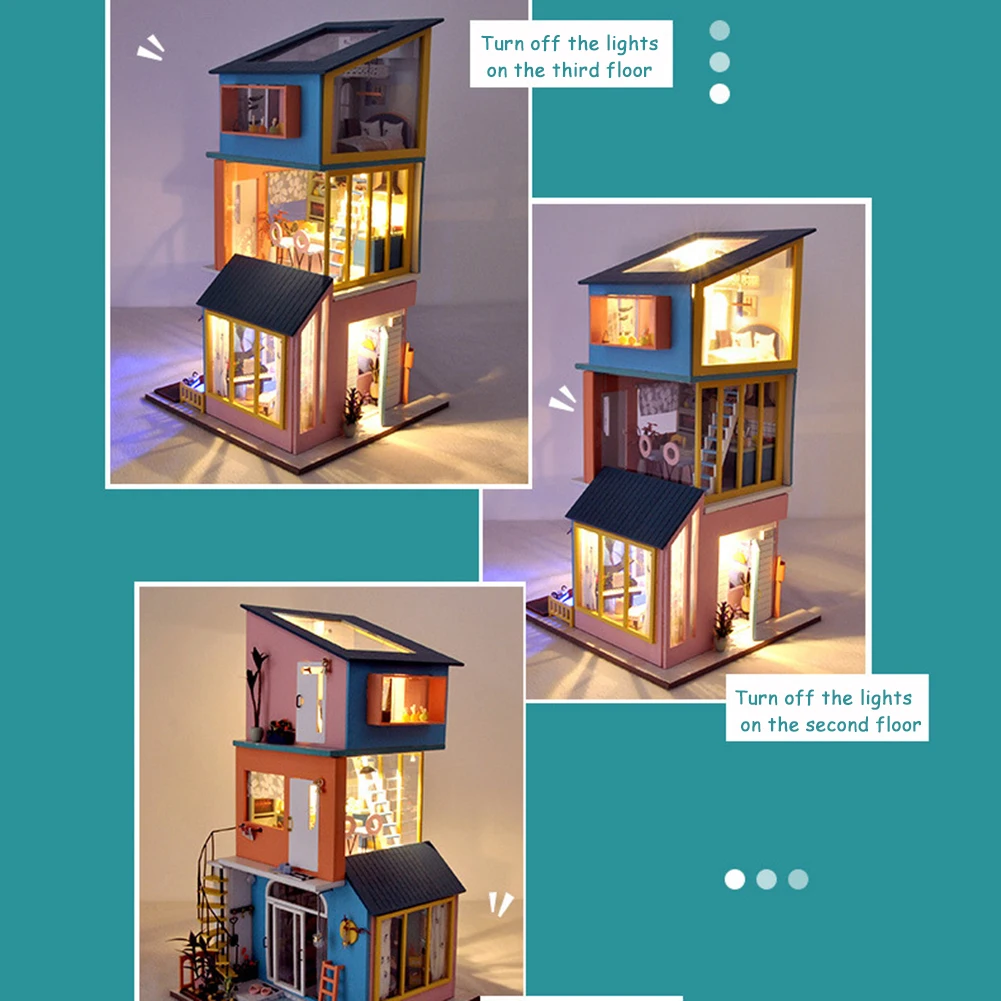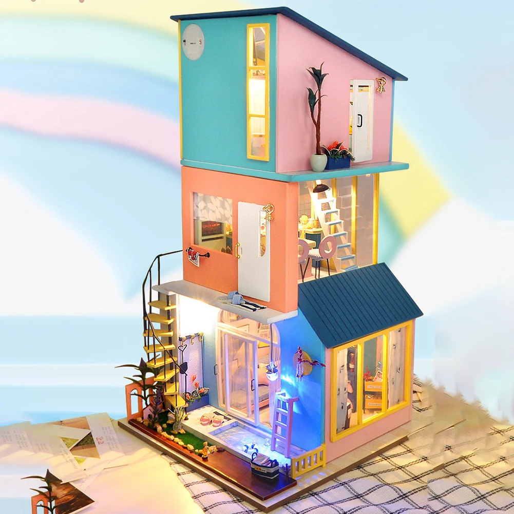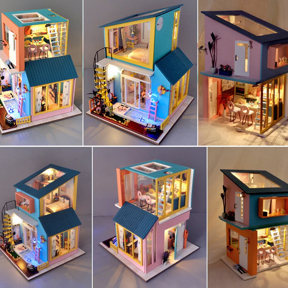 Миниатюрные кукольные домики ручной работы, деревянный домик с мебелью, модель домика с подсветкой, миниатюрная мебель, хижина, сборные Подарочные игрушки