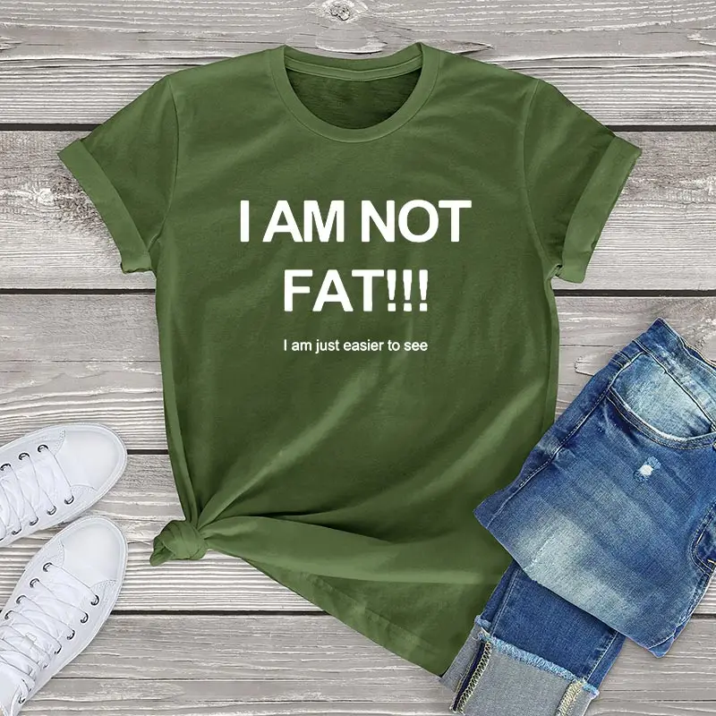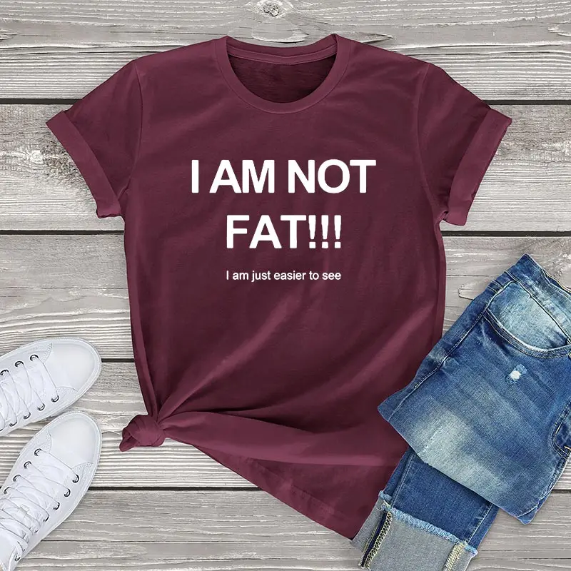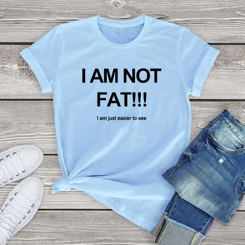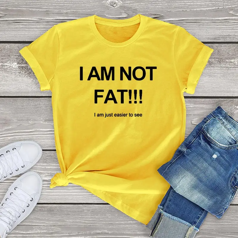 Забавная хлопковая футболка с надписью «I'm Not Fat I Am Just Easy To See» Женская одежда для девочек harajuku женские рубашки модные футболки для девочек топы унисекс