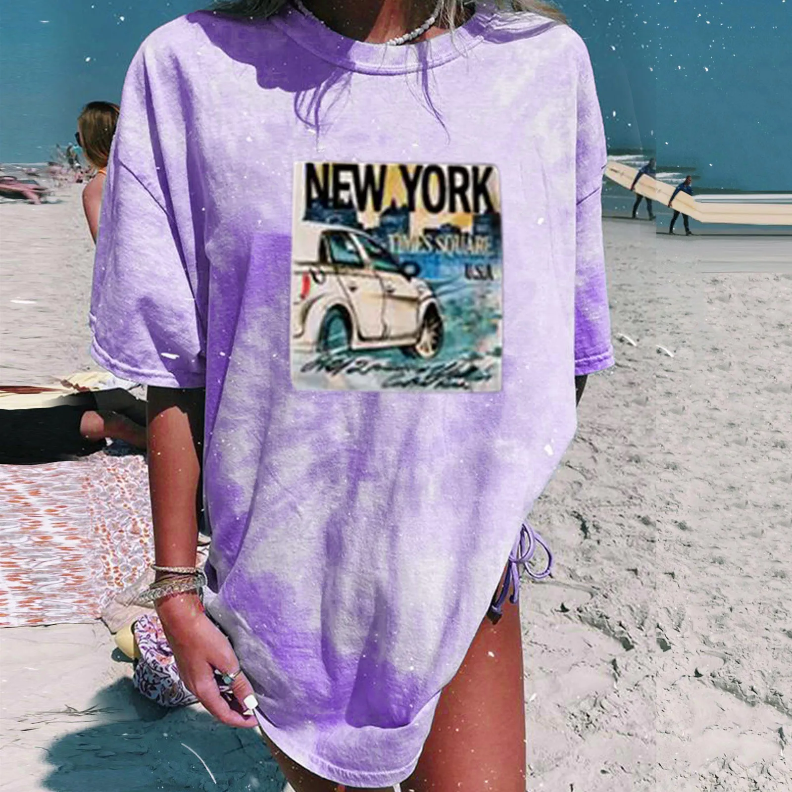 Женские винтажные повседневные топы с короткими рукавами и принтом машинки