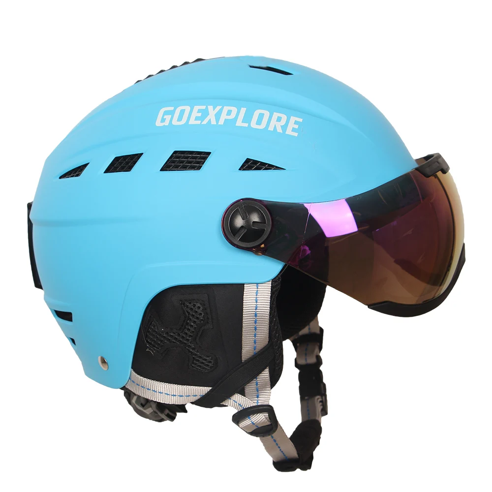 Goexplore ore шлем для сноуборда взрослых ABS + EPS с ПК козырьком интегральный светильник для спорта на открытом воздухе снег Скейтбординг лыжные шлемыДетали продукта* Материал корпуса: АБС-пластик* Размер: S(54-56 см) подходит для детей/M(56-58 см) подходит для женщин/L(58-60 см) подходит для женщин/мужчин/XL(60-62 см) подходит для мужчин* Материал подкладки: EPS, подкладка из синей ткани (моющаяся), мягкая и удобная. (защита ушей не моется)* Пряжка: PC* Характеристики: 16 вентиляционных отверстий, неинтегральная формовочная технология. Регулятор размера регулировки, головка с вентиляционным выключателем.* С зеркалом для катания на лыжах: линзы для катания на лыжах с использованием высокоинтенсивных материалов из поликарбоната, устойчивы к ультрафиолетовому излучению, царапинам, противотуманные фары. Возможно, под крышкой, съемные