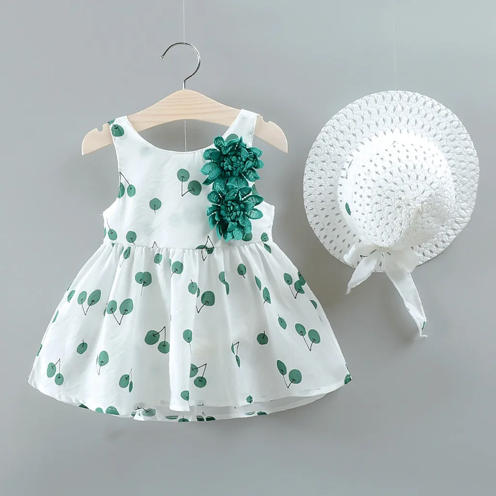 2 шт., детские платья с шапкой без рукавов и цветочным принтом