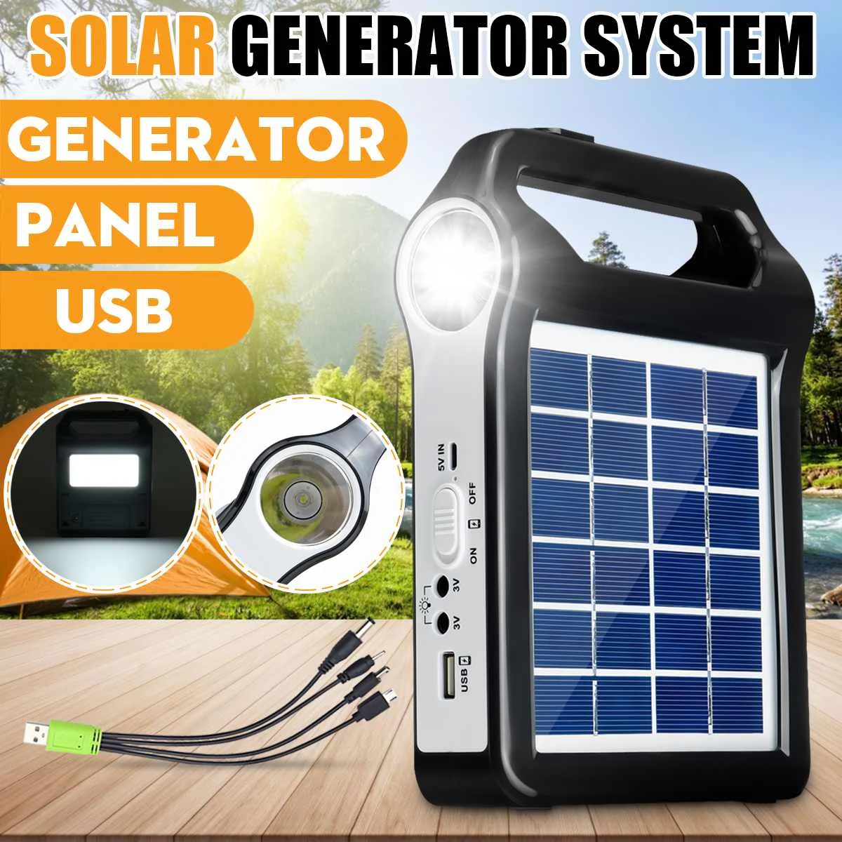 Портативная перезаряжаемая солнечная панель 6 в, генераторная система для хранения энергии, зарядное устройство USB с лампочкой, домашняя система солнечной энергии