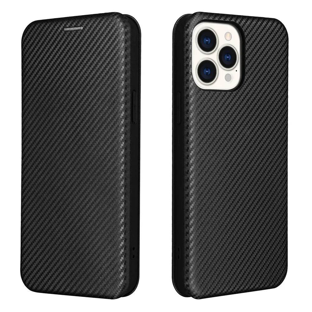Магнитный углеродного волокна Флип Бумажник чехол для телефона Blac...