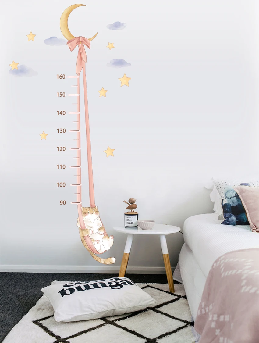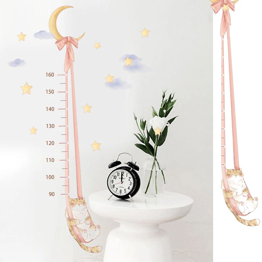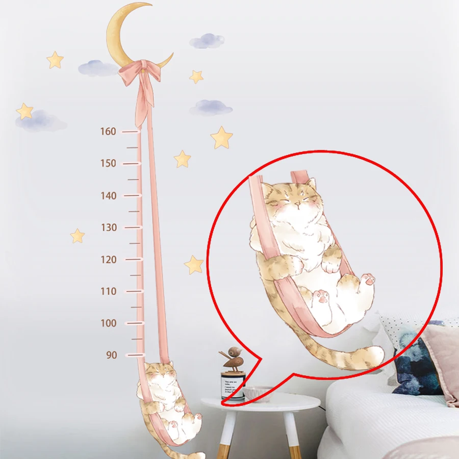 С анимальным принтом Кот, высота мера наклейки на стену для детской комнаты, детская комната декоративные виниловые обои для спальни Наклейки на стены