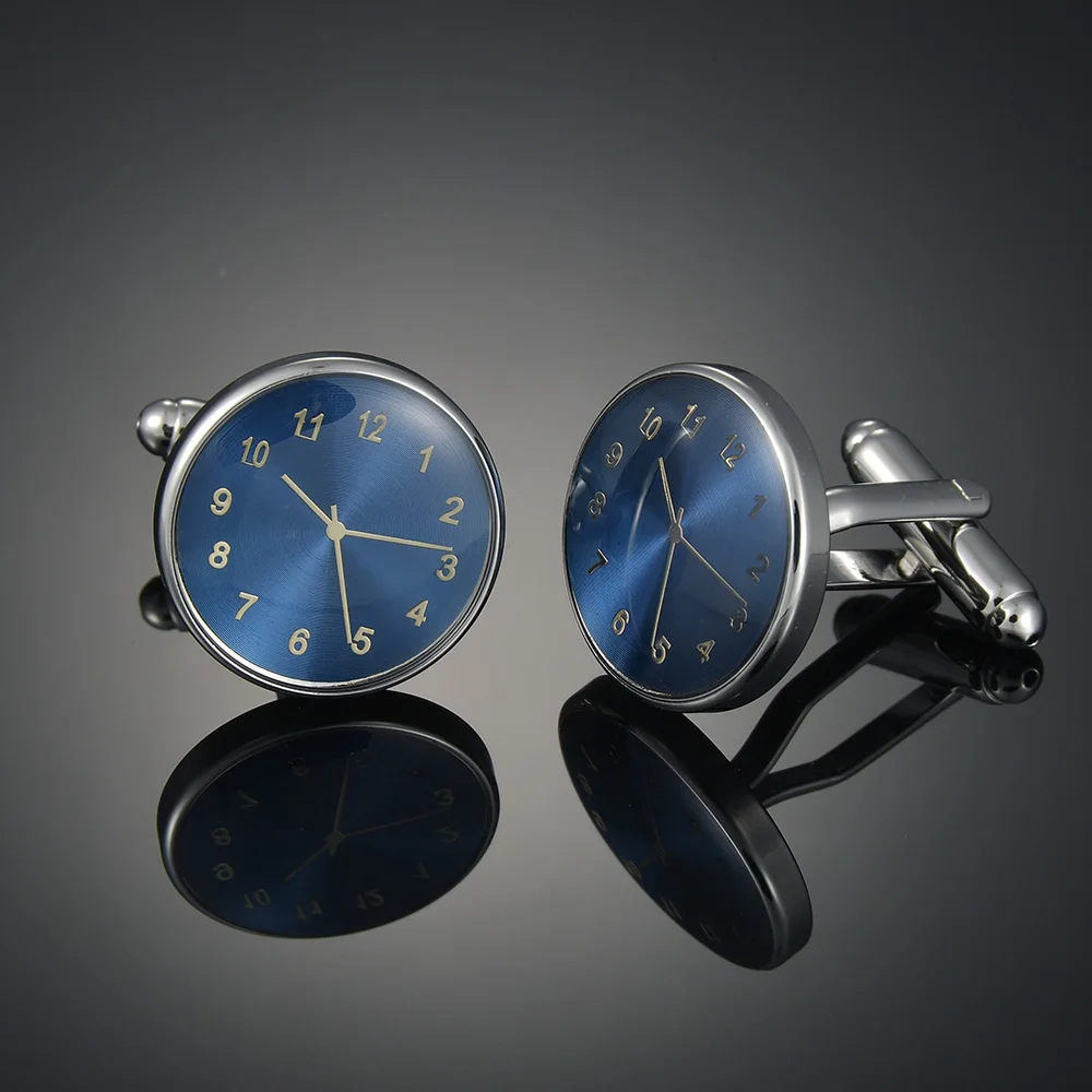 1.Название:Запонки мужские синие нижние часы круглой формы Бизнес платье высокого качества металлические медные запонки для французских рубашек подарки на свадьбу