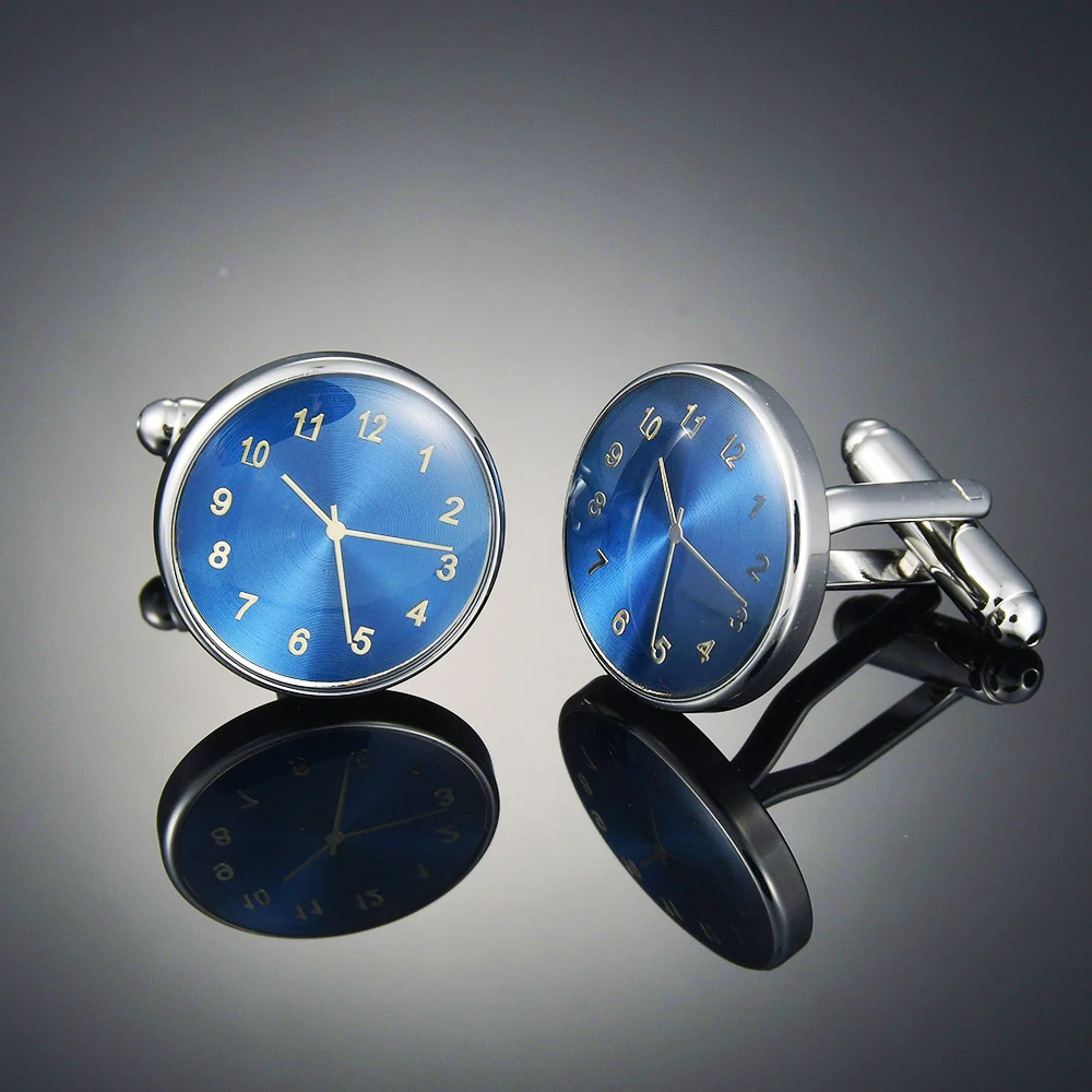 Запонки мужские часы с голубым дном круглые формы для делового платья высококачественные металлические медные часы запонки для французских рубашек звенья для свадьбы