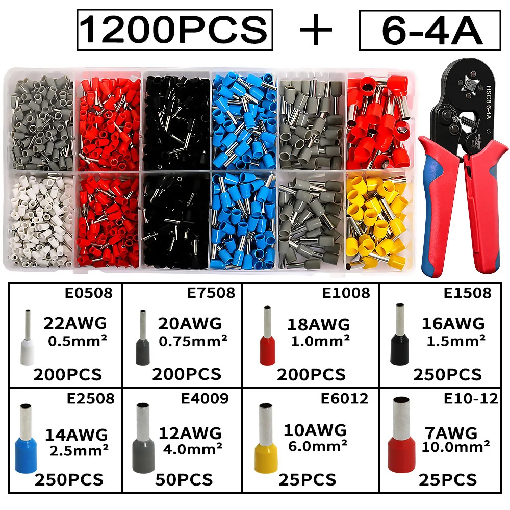 340/1200 шт. Трубчатый клеммный комплект для электрических проводов, комплект для изолированного шнура, наконечники, обжимной разъем