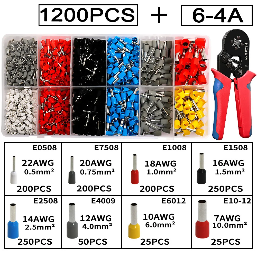 340/1200 шт. 관형 터미널 전기 와이어 커넥터 키트 절연 코드 핀 페룰 크림프 터미널 커넥터 크림핑 키트