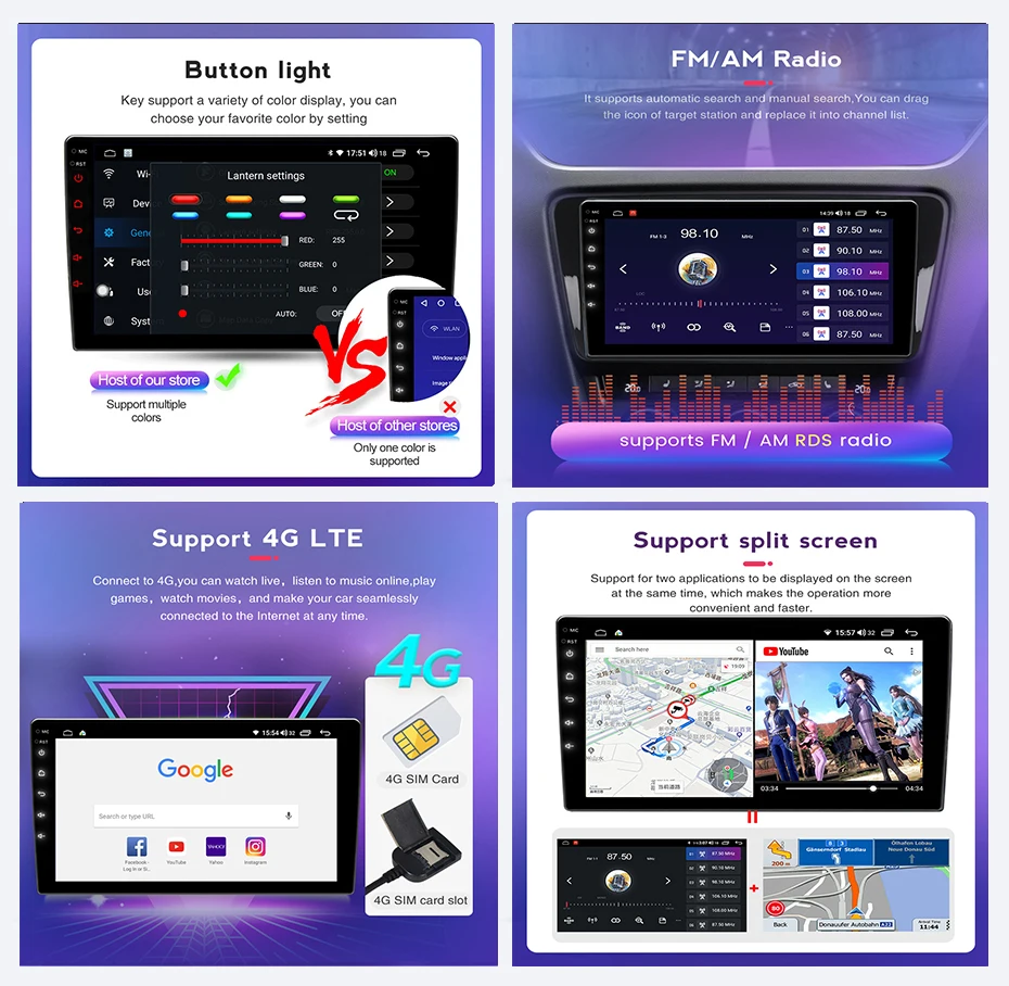 NaviFly 7862C функция> Android OS + API 29 + 9 дюймов IPS экран + 1280*720 разрешение + Octa Core + DDR4 4 Гб (6 Гб опционально) флэш-памяти + 64 Гб памяти (128 Гб опционально) + беспроводной Carplay + Android Auto + DSP + оптический выход + Коаксиальный выход + алюминиевый радиатор + Встроенный вентилятор + встроенный Wifi + 4G LTE + gps-навигация + управление рулевым колесом + Bluetooth BT5.0 + Встроенный микрофон + Поддержка USB ADAS DVR Функция + Европа DAB функция + 2K Vedio Play