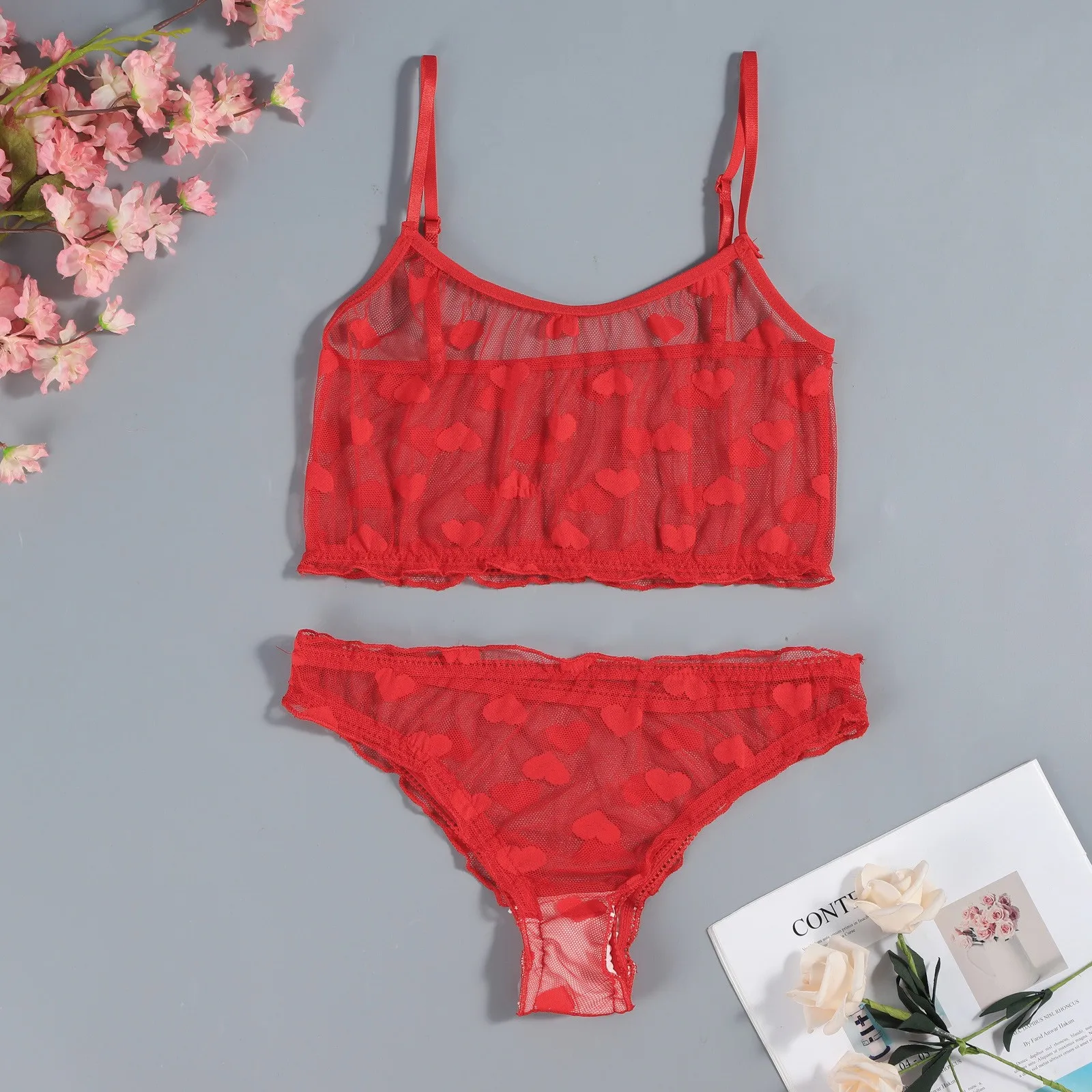 Размера плюс Lenceria чувственный Mujer Для женщин нижнее белье, сексуальные Лифчики любовь кружевной бюстгальтер трусы комплект нижнего белья из прозрачной марли, эротическое белье