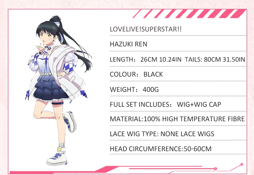 Анихут liella! Парик для косплея Hazuki Ren Black, милый! Суперзвезда! Термостойкие синтетические волосы для косплея, конский хвост, Hazuki Ren