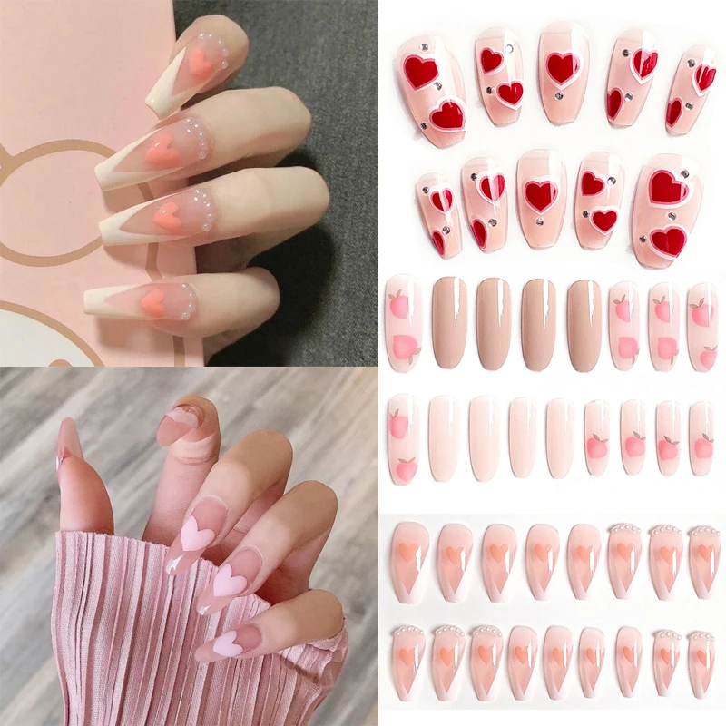 Красивый съемный ноготь с накладкой персикового цвета в форме сердца для наращивания ногтей во французском стиле, 24 шт., декор для ногтей, балерина