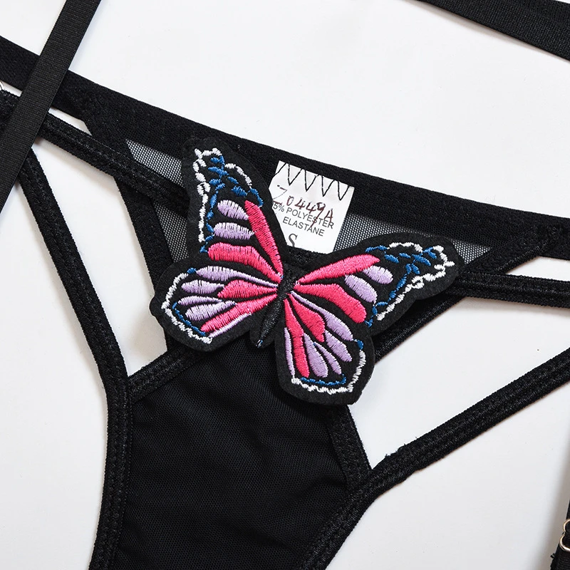 Комплект женского сексуального нижнего белья с вышивкой в виде бабо...