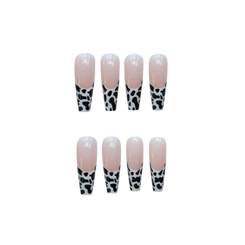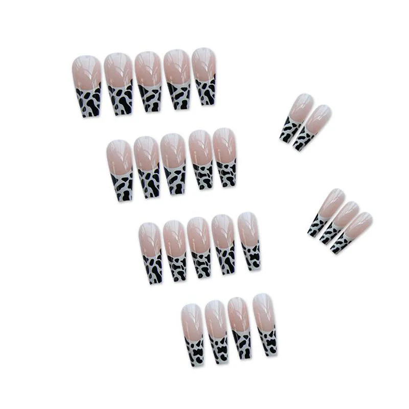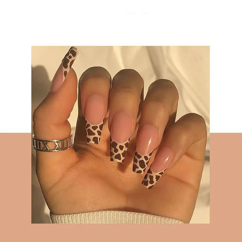 Накладные ногти черного леопарда, удлиненные, телесного цвета, накладные ногти в виде гроба, акриловые накладные ногти с клеем, 24 шт.набор