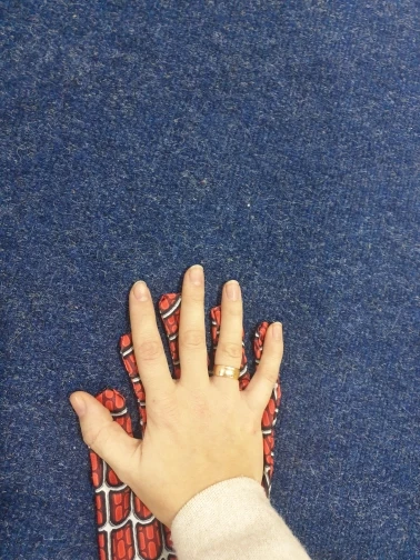 Костюм с левой рукой почти не закончен, чтобы не положить палец из-за отсутствия пространства.