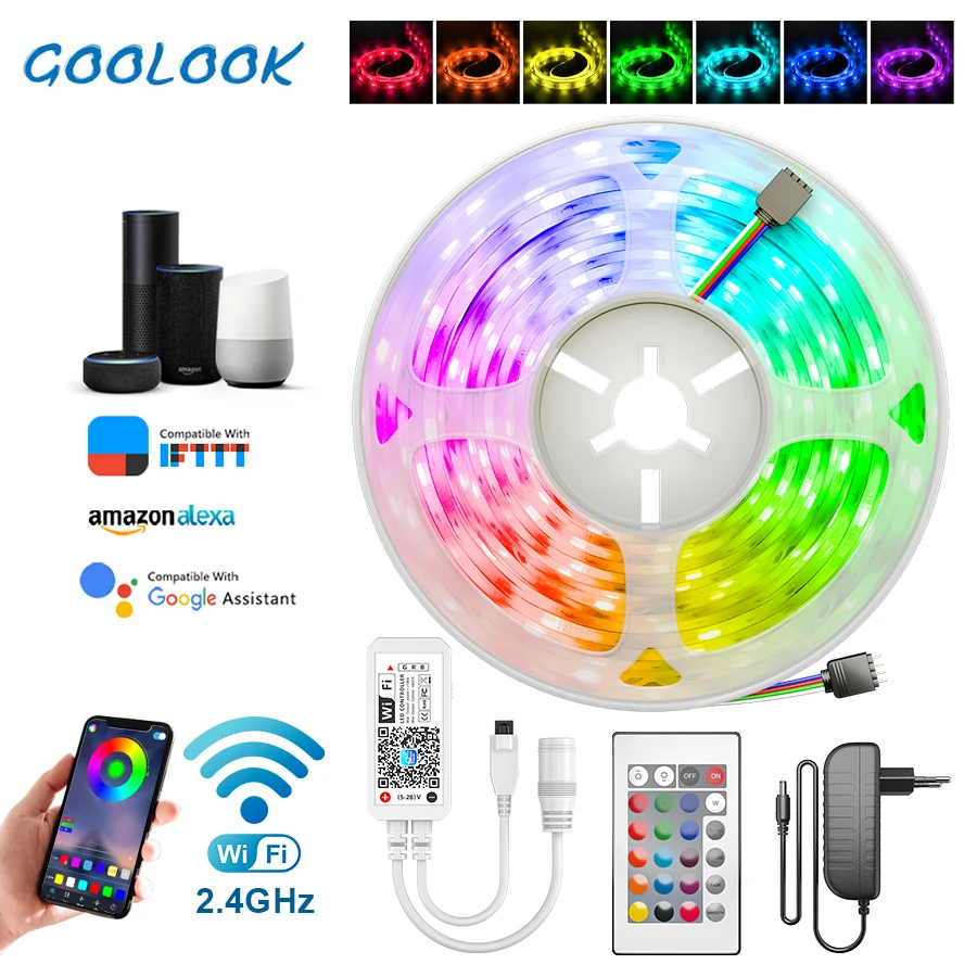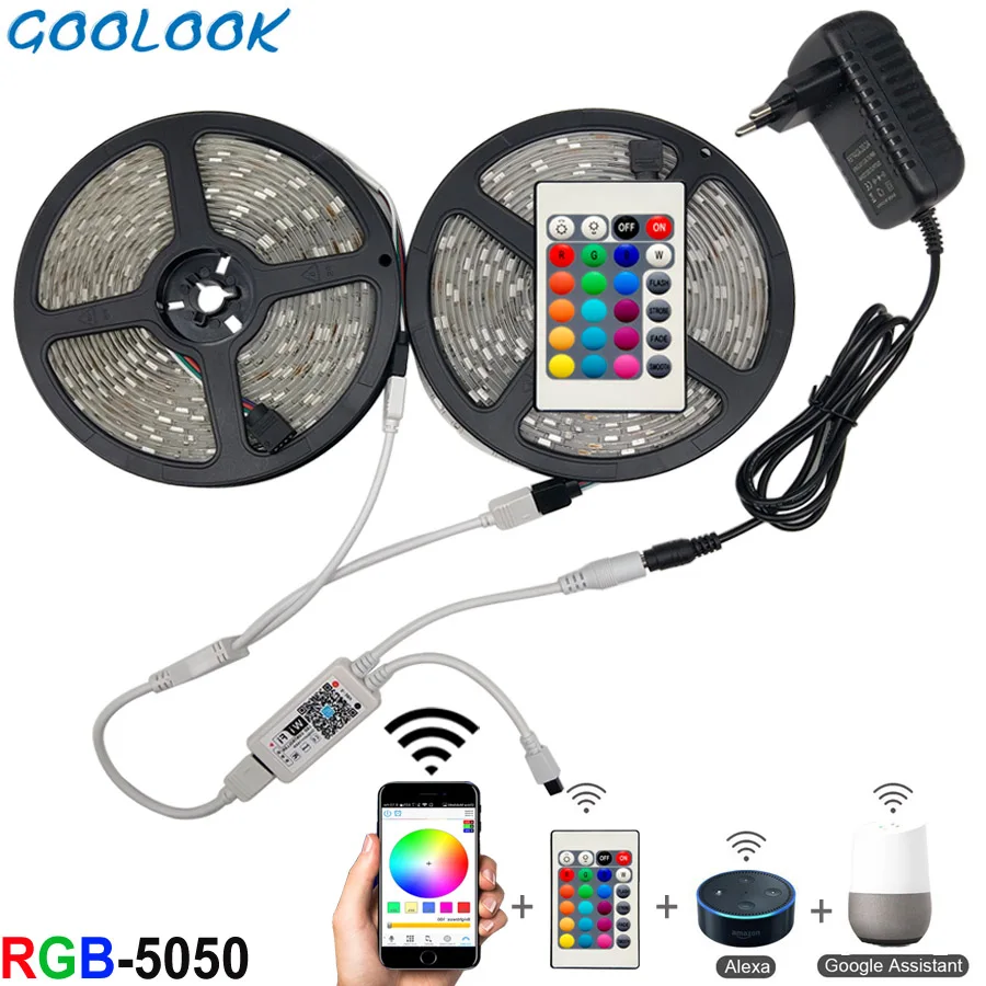 Светодиодная лента, водонепроницаемая, цветная, 12 В пост. тока, 51015 м + Wi-Fi-контроллер и адаптер питания