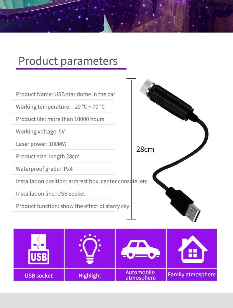 1. Домашний USB Ночной светильник, атмосферный светильник, автомобильный Звездный атмосферный светильник.