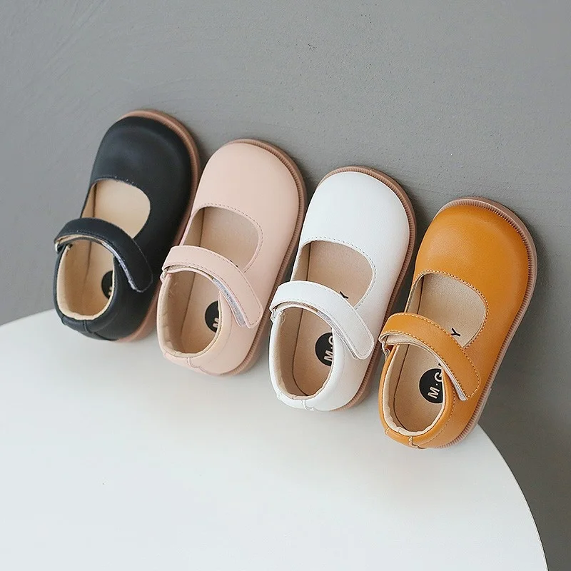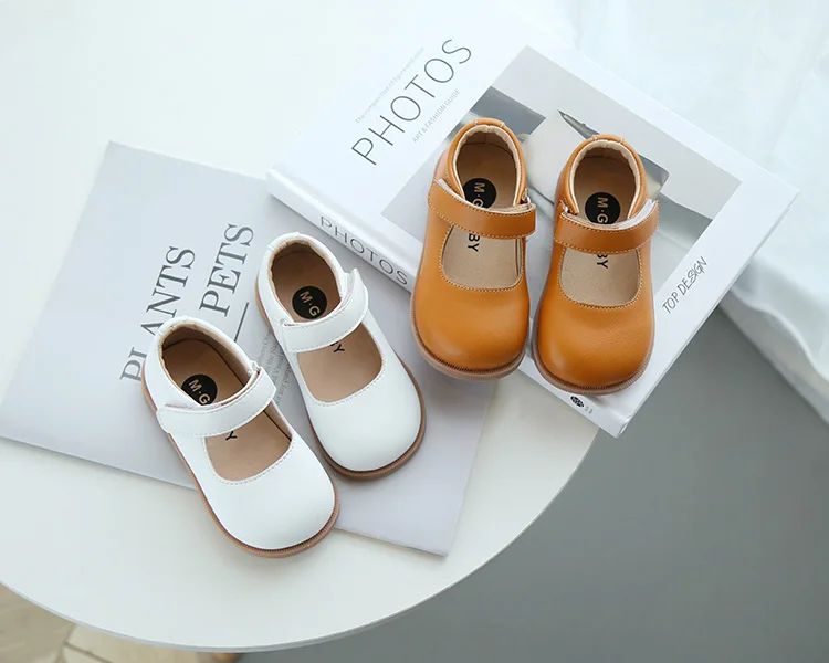 Новые корейские детские туфли, модные однотонные туфли принцессы для девочек, детская обувь на плоской подошве, кожаные туфли с мягкой подошвой