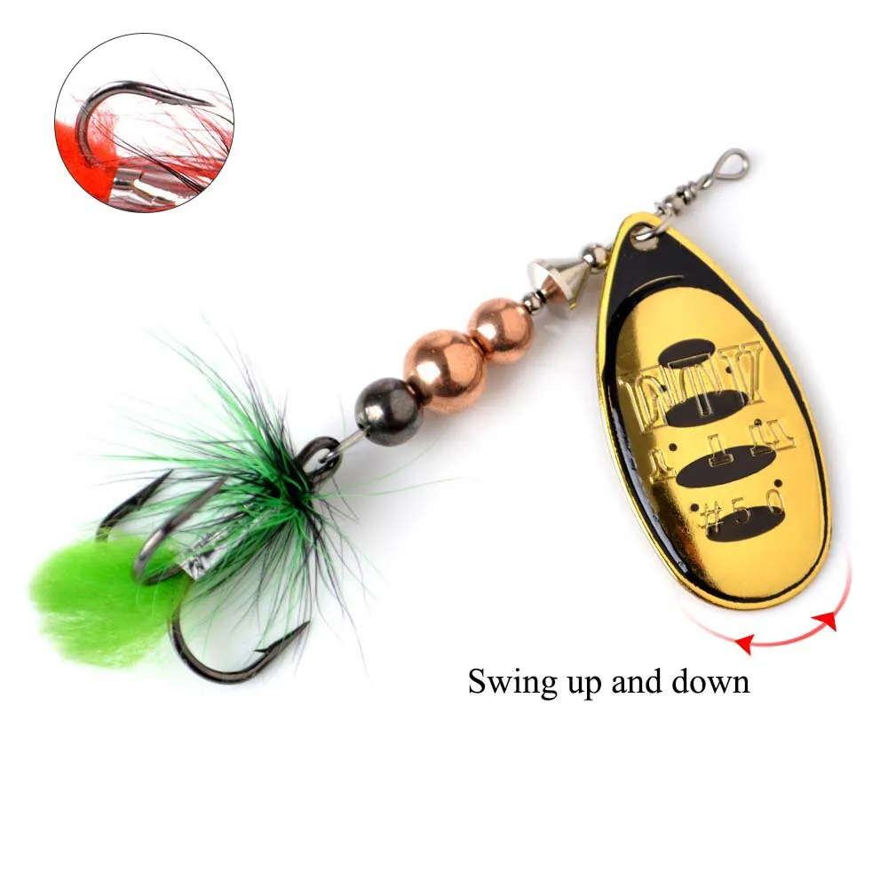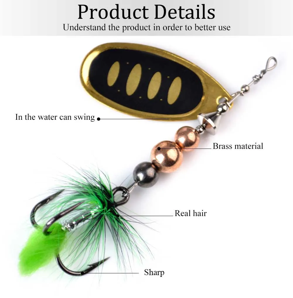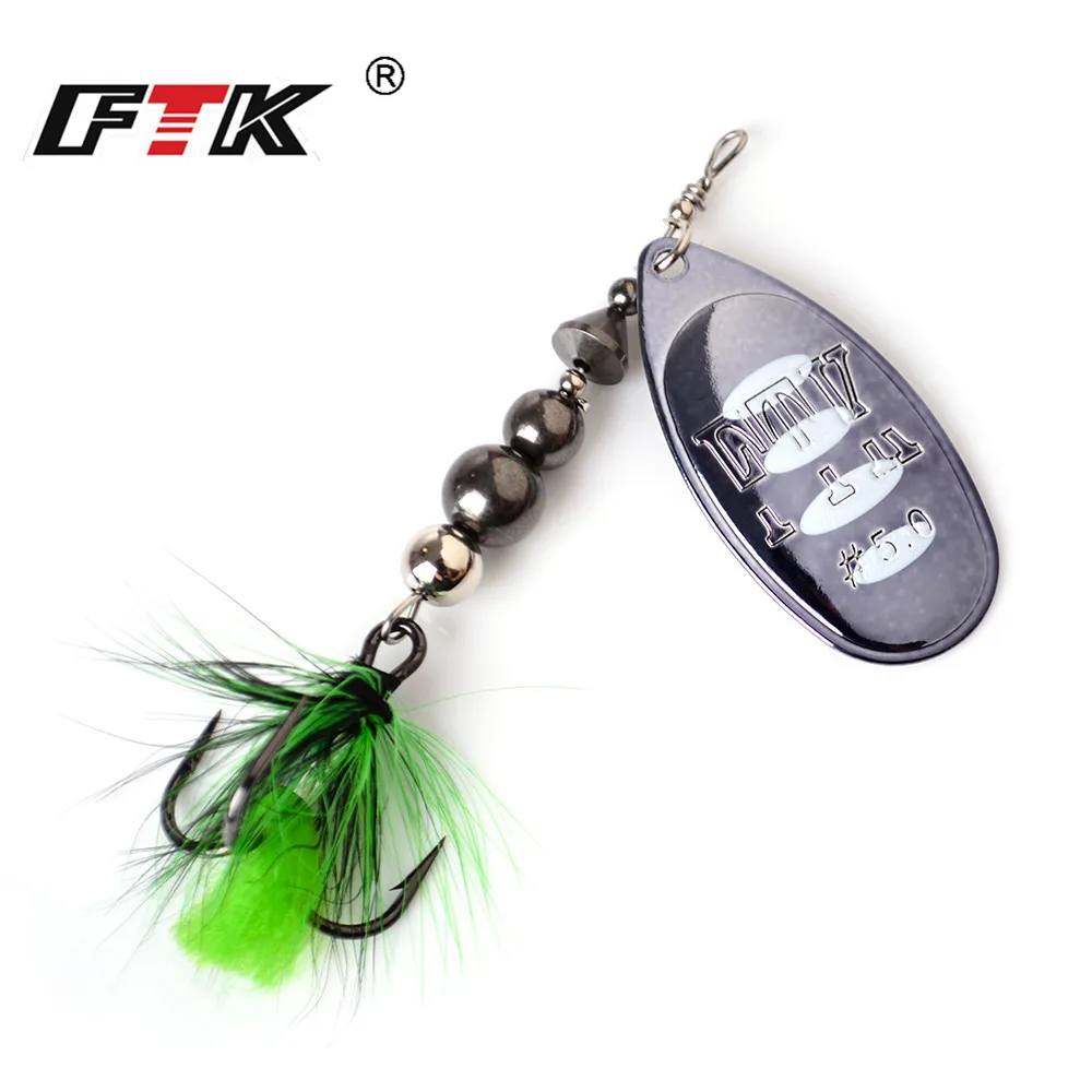 2021 Новый FTK рыболовный крючок с монофиламентной металлической пластиной, латунный материал, острый крючок, перо, овальные ивовые листья, лезвия, кольцо, поворот вверх и вниз