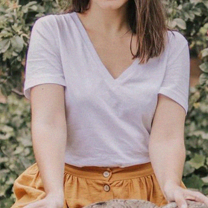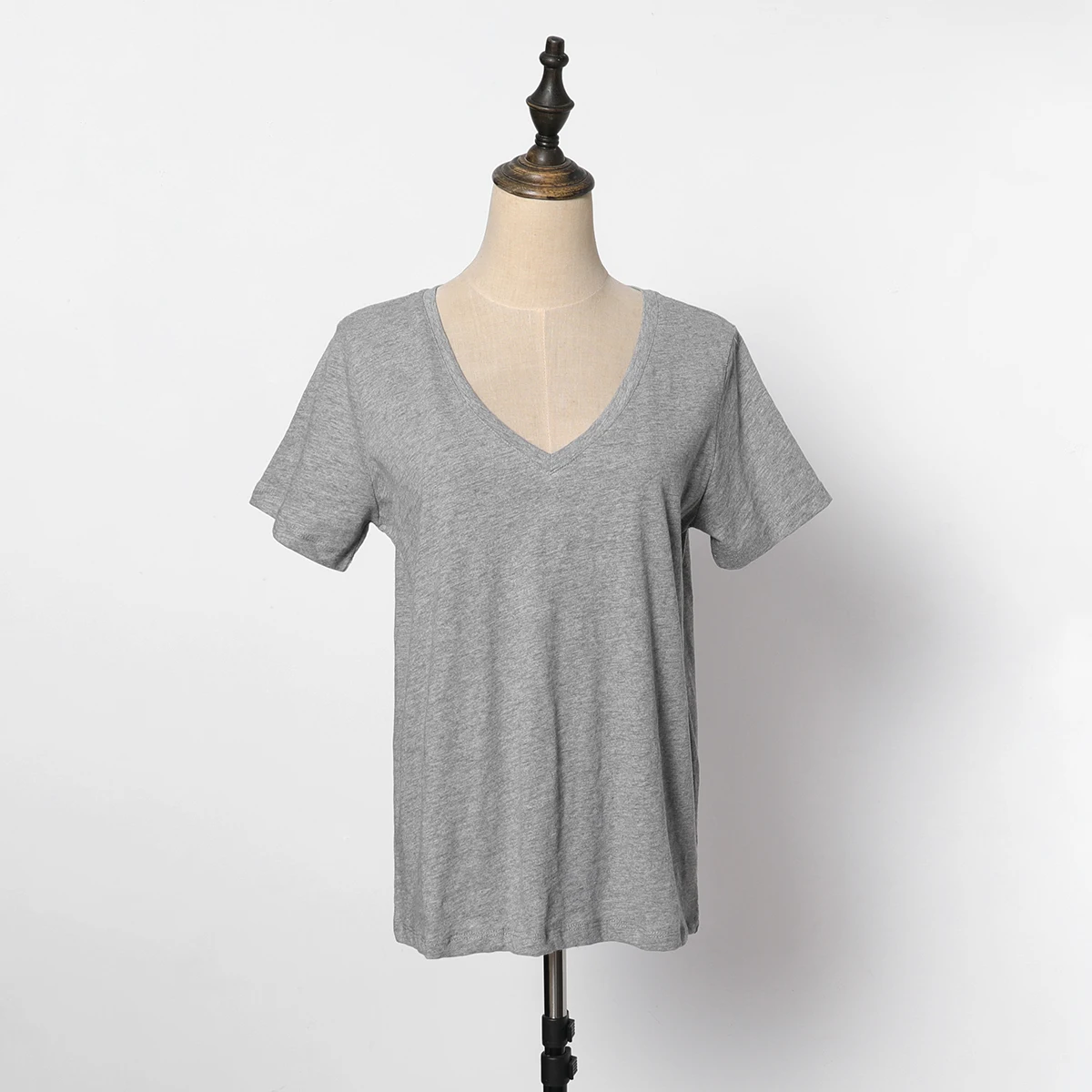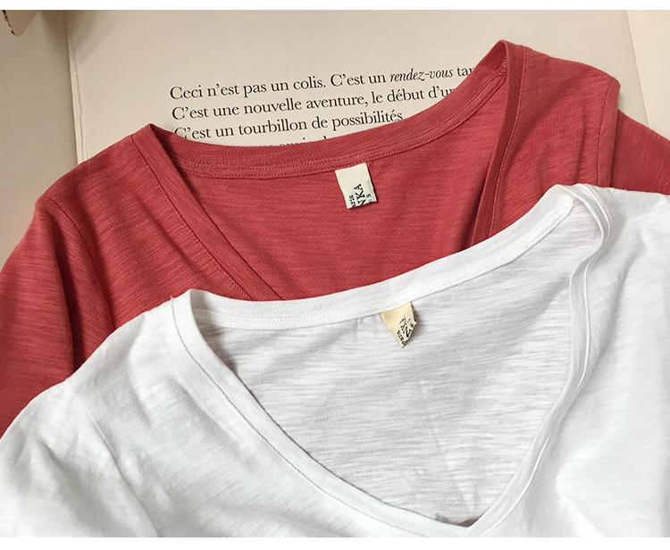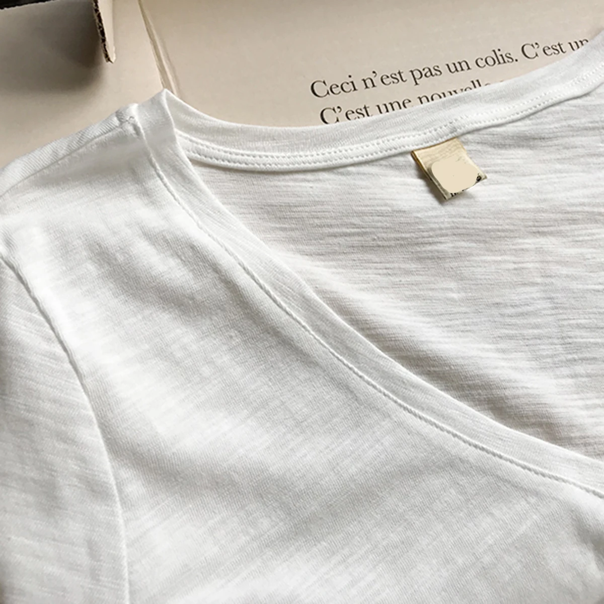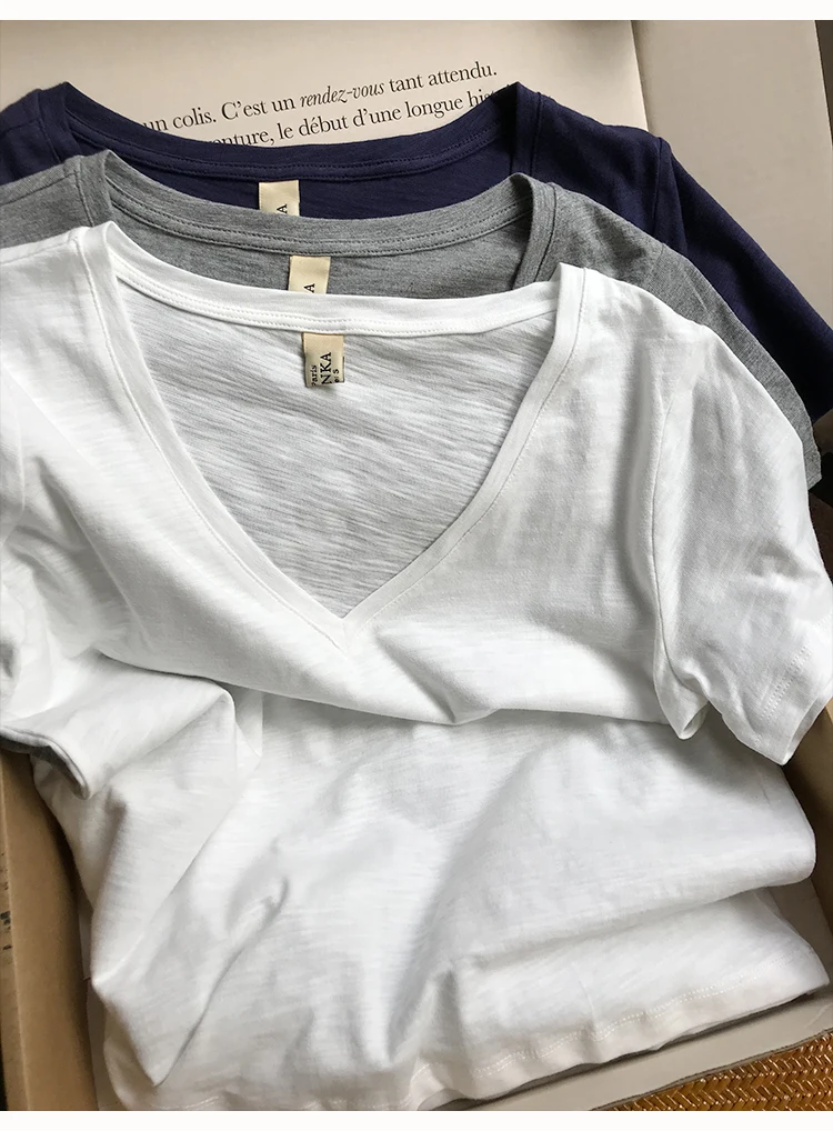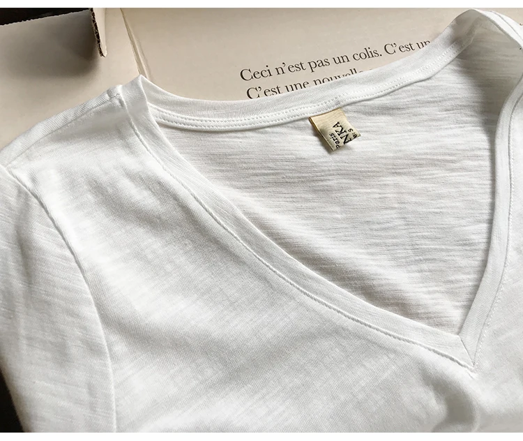 Футболка женская базовая с коротким рукавом, элегантная повседневная простая хлопковая рубашка с V-образным вырезом, топ, белый черный, лето 2022