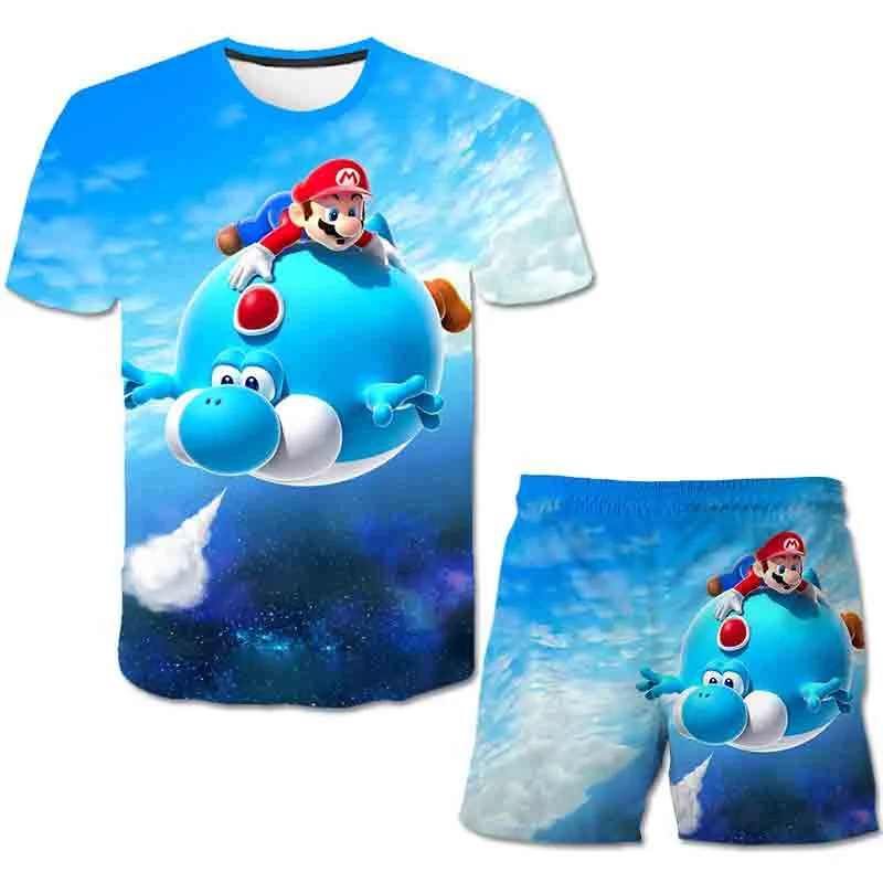 Футболка для маленьких мальчиков, Лидер продаж, футболки для игр Марио-Брос, костюмы, комплекты детской одежды, футболка и шорты, одежда для девочек и мальчиков, брюки, костюм
