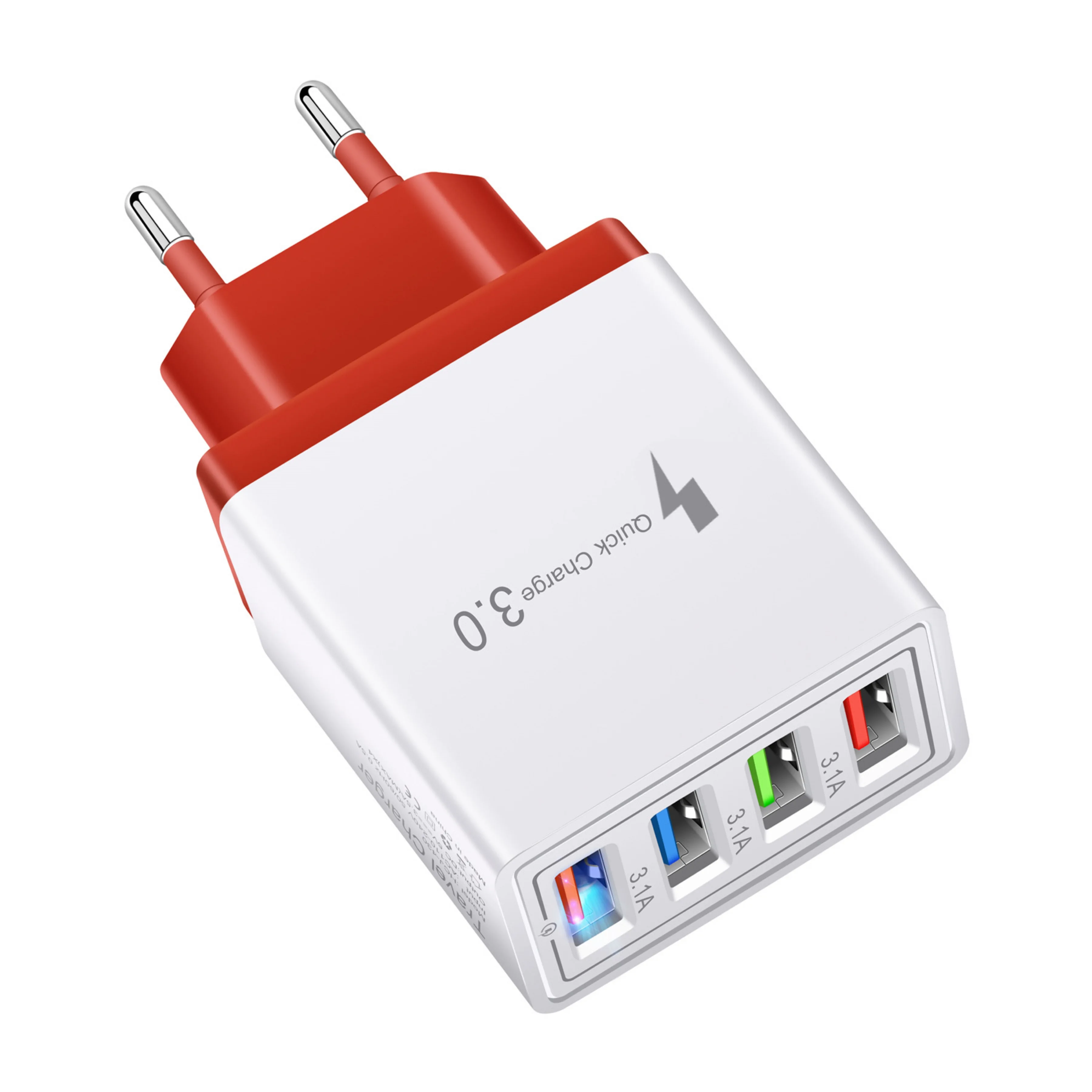 Сетевой адаптер с 4 Usb-портами и поддержкой быстрой зарядки, 3,0 А