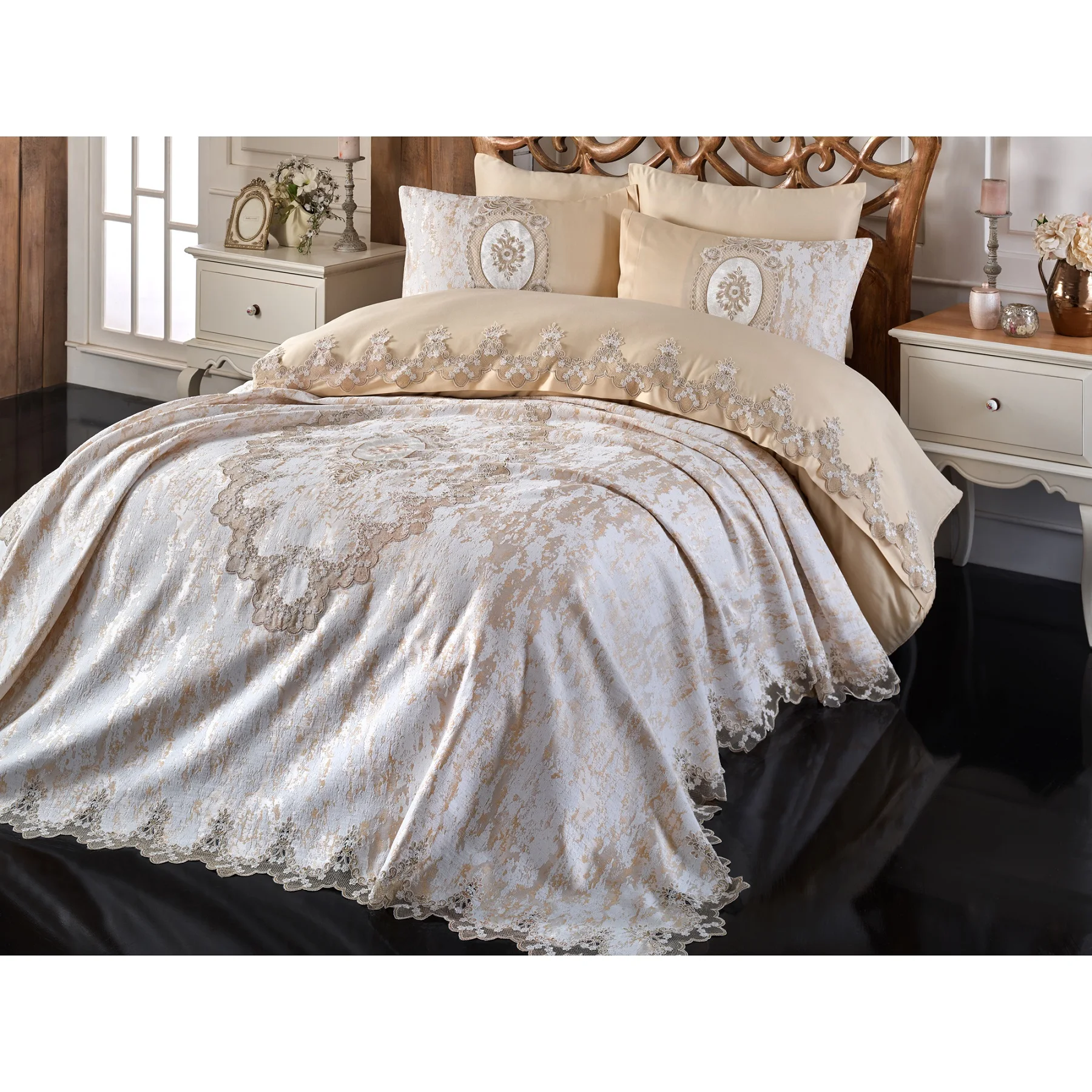 Материал: Хлопок-лучший выбор для здоровья человека. При прикосновении к ткани вы также чувствуете себя лучше, чем другие материалы. В этих комплектах белье, которое прикасается к вашей коже, полностью хлопковое (атласная техника). Покрывала также изготовлены из хлопка. Края покрывала выполнены на шнуровке (французский тип).Узор: великолепные и стильные покрывала полностью изменят атмосферу вашей спальни. Эти роскошные покрывала подходят для всех возрастов моды.Доставка: получите преимущество быстрой доставки из Турции по всему миру. Географически Турция имеет преимущество быстрой доставки почти для всех стран мира, особенно для России, Европы, Израиля и США, благодаря системам экспресс-доставки. Качество: получите преимущество от турецкого текстиля, который известен во всем мире с его качеством, с лучшими ценами.