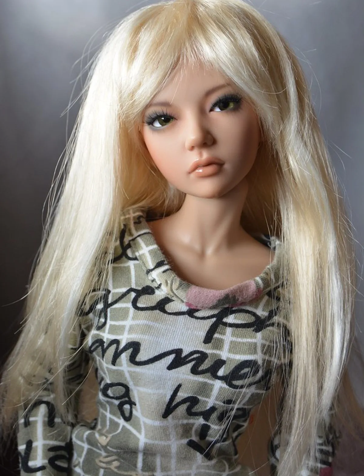 Обалденная!!! Кукла сделана качественно. Швы зашкурены, все детали одного цвета, без сколов, без пятен. макияж как и просила ♥ Посылку принёс домой курьер. Хорошо упакована, в мягком одеяле :). Хотелось бы коробку, но так даже и лучше, меньше коробок - больше места дома)))) Кукла стоит, сидит. Всё детализировано: складки, ногти, ушки, пресс и выше)))