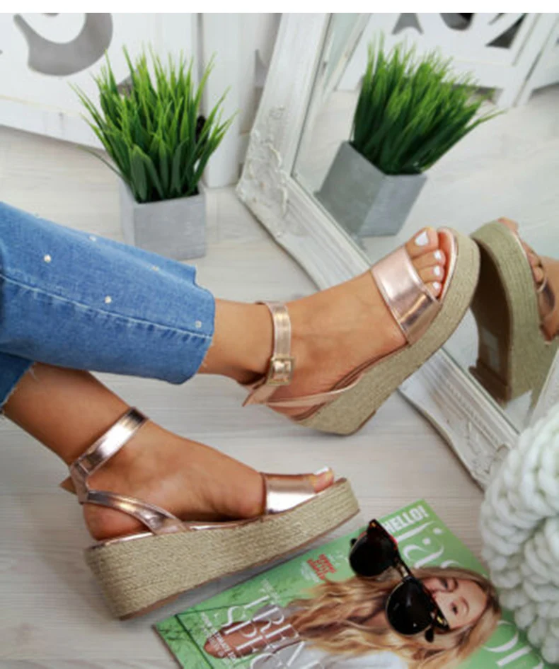 Женские плетёные туфли-лодочки без застежек с открытым носком женские пробковые женские сандалии на танкетке на плоской подошве; Обувь на платформе, сезон лето; Обувь на плоской подошве Размеры; Большие размеры 35-43