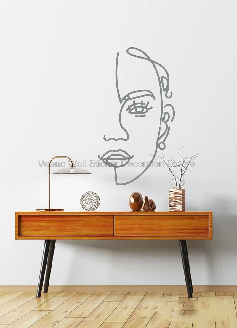 Женская абстрактная Настенная Наклейка с изображением лица, Современная Минималистичная прикроватная Спальня, домашняя линия, художественное украшение, Виниловая наклейка, подарок для девочки C15