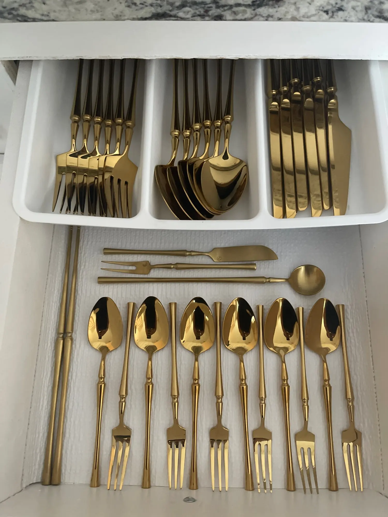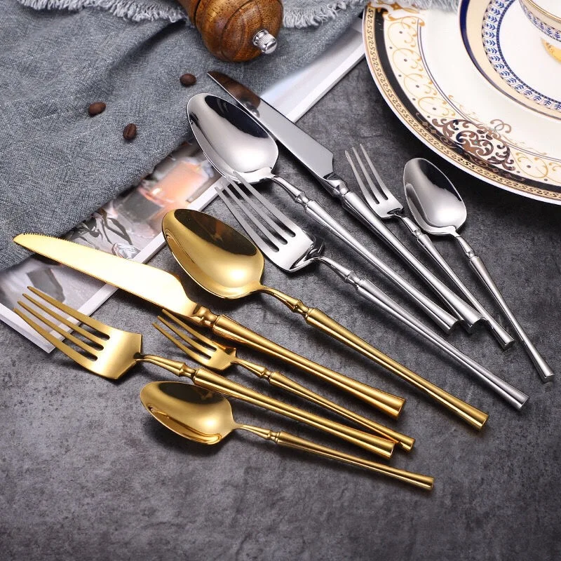 Набор столовых приборов золотистого 1810 Нержавеющаясталь Золотой ножи, вилки и ложки столовый набор для кухни посуда золотой набор посуды дропшиппинг