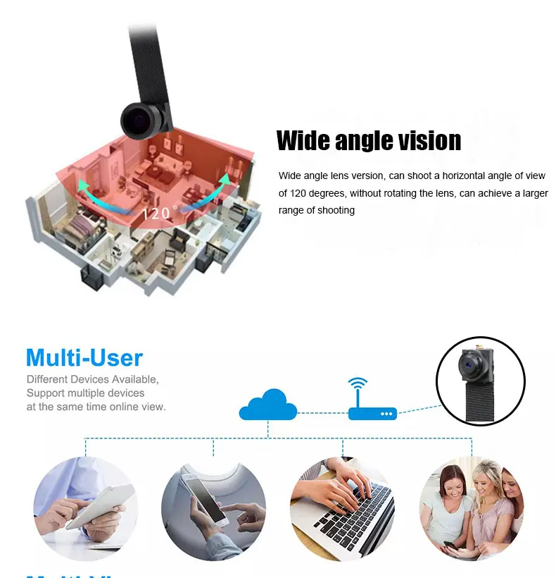 Это сетевая камера. Нет ограничений на расстояние для просмотра или записи видео в режиме реального времени после завершения конфигурации сети в вашем смартфоне в режиме P2P. Вы можете просматривать или записывать видео в реальном времени в любое время. Особенности:Запись аудио и видео в реальном времениРазрешение видео 1080P/720P/640P/480PWiFi IP Сетевая функцияПоддержка приложения для смартфона и планшетаПоддержка доступа 4 пользователей одновременноПоддержка компьютерного просмотра и управления ПКУгол обзора объектива 90 градусовПоддержка записи детектива движенияПоддержка Micro SD карты 64 Гб (sd-карта не входит в комплект)Круглое хранилищеПоддержка записи и зарядки одновременно Параметры:Разрешение видео: 4k/1080P/720PФормат видео: ASFПрограммное обеспечение плеера: VLCPlayer/SMPlayerЧастота видеозаписи: 25/30 кадров в секундуУгол обзора объектива: 90/120 градусовМикрофон: ВстроенныйПамять: поддержка 64 ГБ Micro Card in MaxМин. Освещение: 2 люксаОперационная система смартфона: iPhone iPad или AndroidВеб-браузер: IE7 и выше, Firefox, Safari и т. д. Посылка: 1 мини-камера WiFi1 х батарейный блок (без аккумулятора 18650)1 х кабель1 х Руководство
