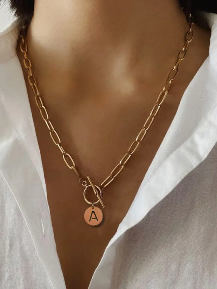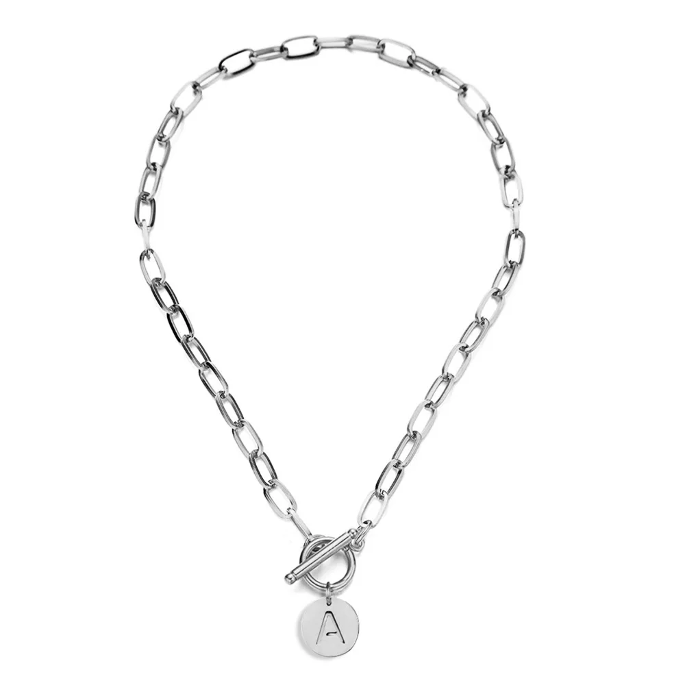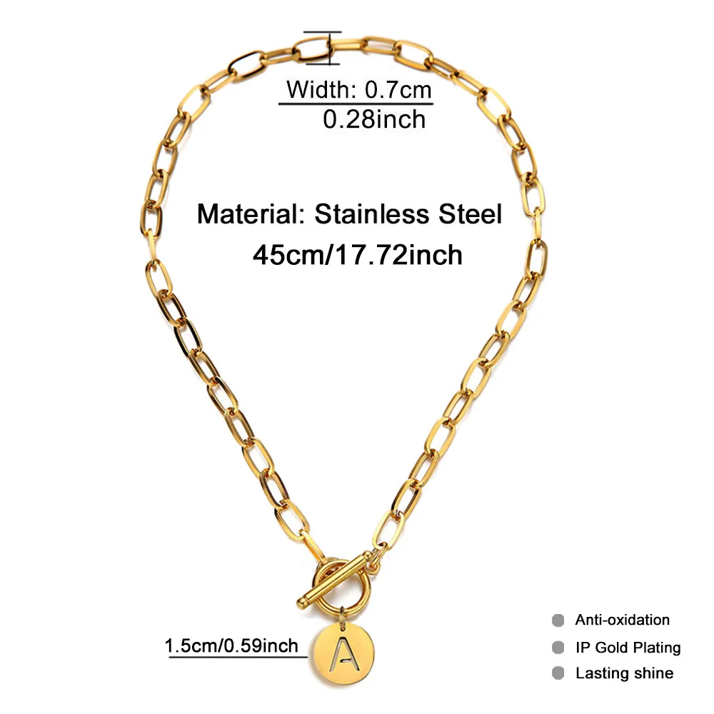 A-Z из нержавеющей стали с буквенным принтом, ожерелье-тогл для женщин золотого цвета, металлическое круглое ожерелье-чокер с алфавитом для монет