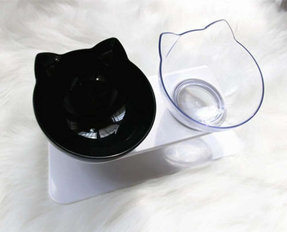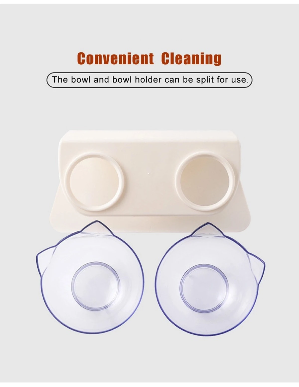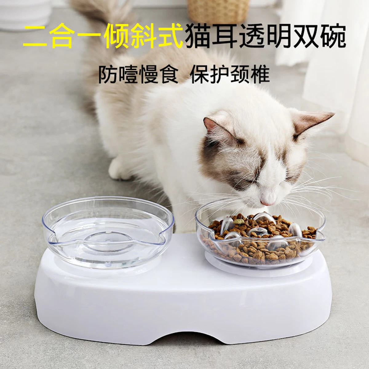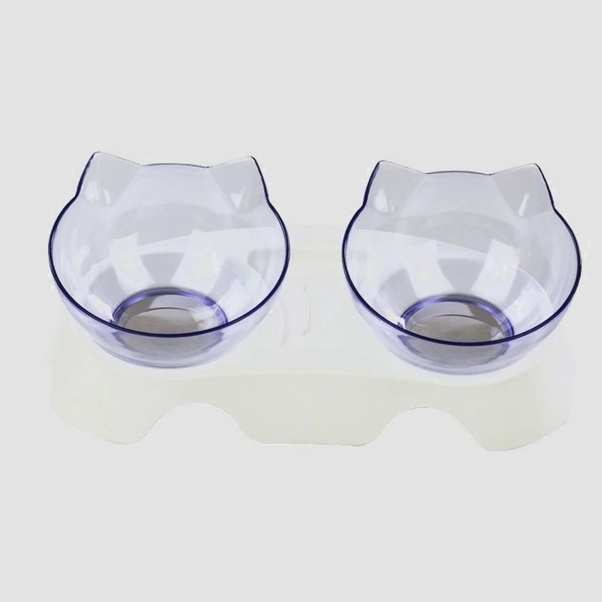 Кошачья миска двойной Диагональ рот Прозрачный -- популярная уникальная известная марка Шея защитный наклоне корм для кошек чаша non-керамическая миска для домашних животных кошек собачья миска
