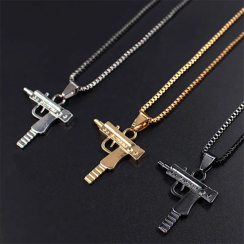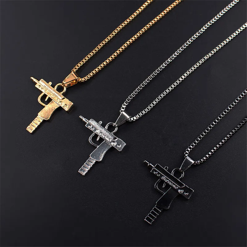 Лидер продаж ожерелье с подвеской в виде пистолета пулемета УЗИ Мод...