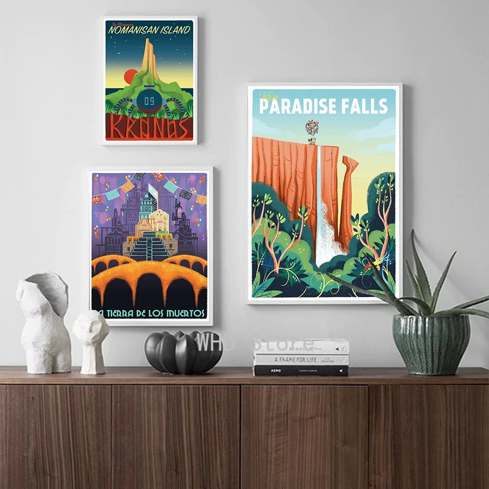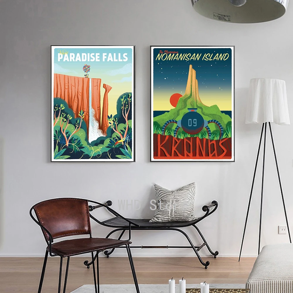 Постер для отпуска и путешествий Pixar, пейзаж, холст, картина, замок, водопад, Настенная картина, современный декор для гостиной