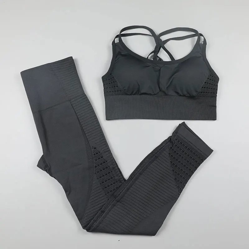 Бесшовный Женский комплект для йоги, спортивная одежда для тренировок, одежда для спортзала, леггинсы с высокой талией для фитнеса, спортивные костюмы для бега, одежда для активного отдыха, 2 шт.