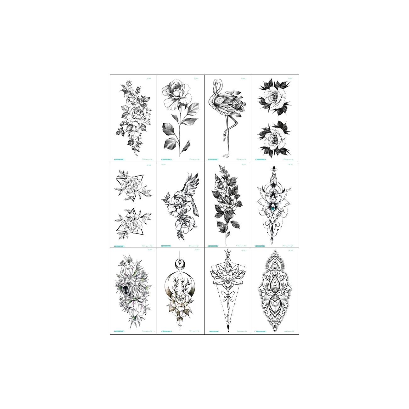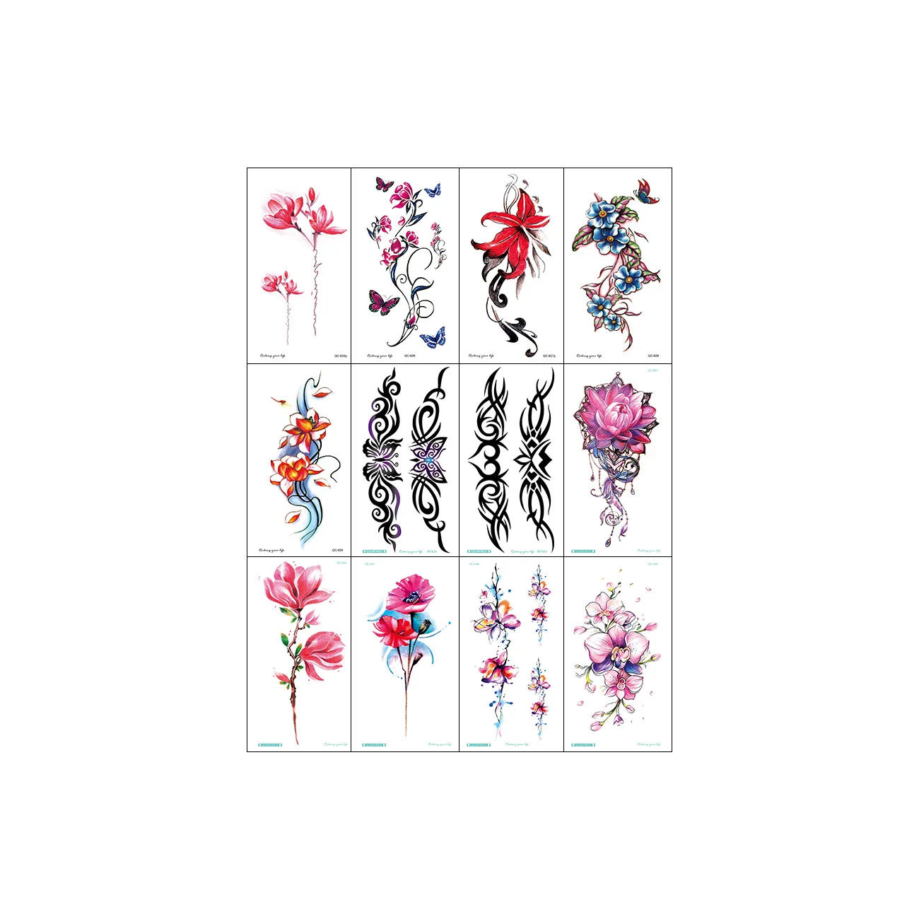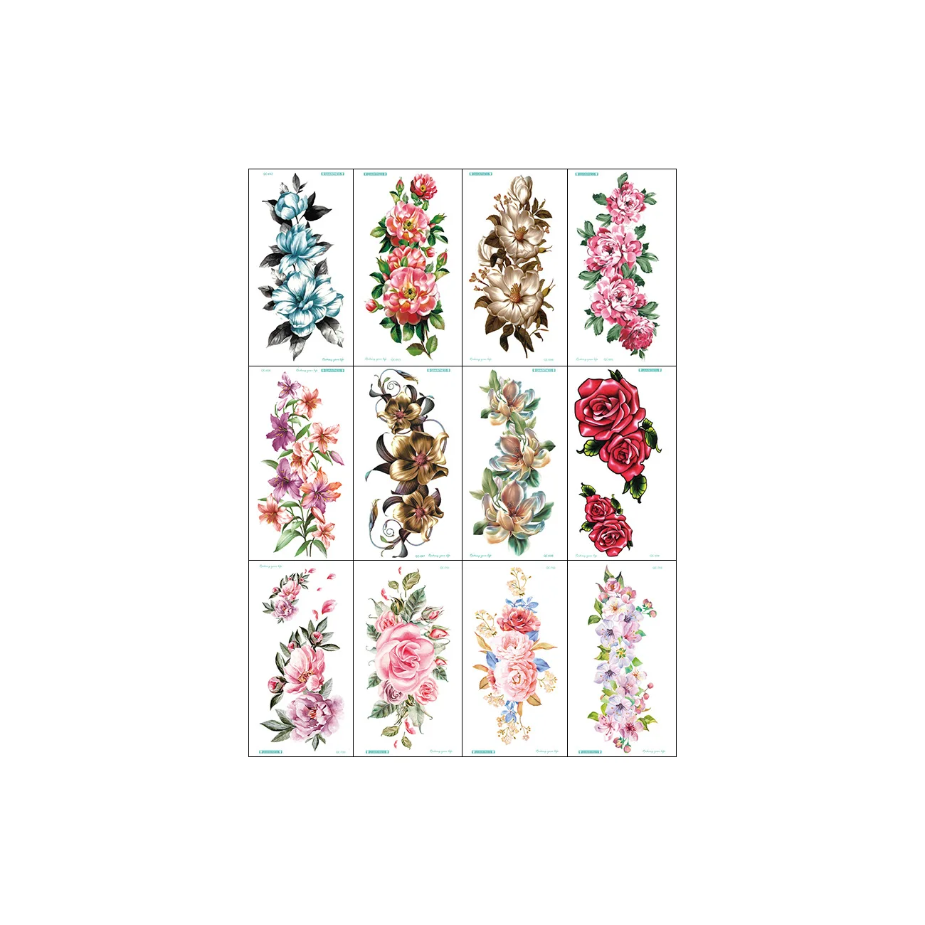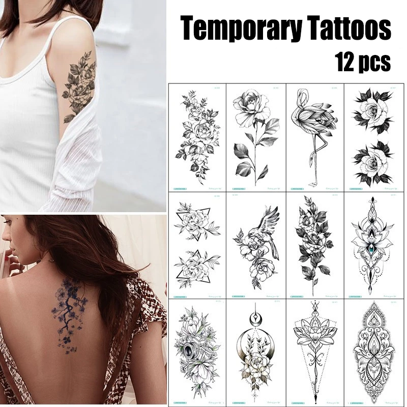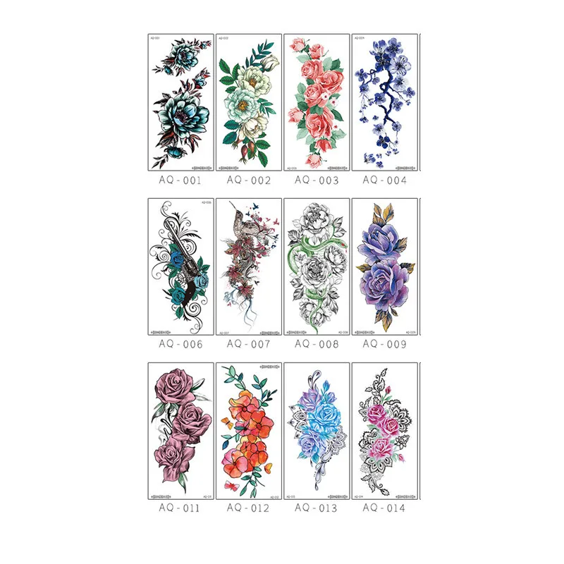 12 шт., с декором в виде цветка, временные татуировки для Для женщин Роза с бабочками и птицами штаны с фальш-вставкой, наклейки Waterprrof половину руки наклейки в стиле боди-арт
