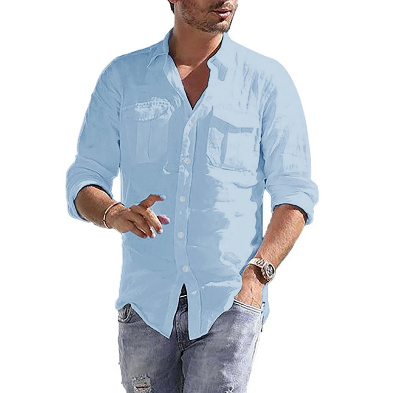 Мужская футболка с длинными рукавами из Демисезонный Особенности рубашки для мужчин Повседневная рубашка новое поступление с длинным рукавом Повседневная приталенная мужская рубашка